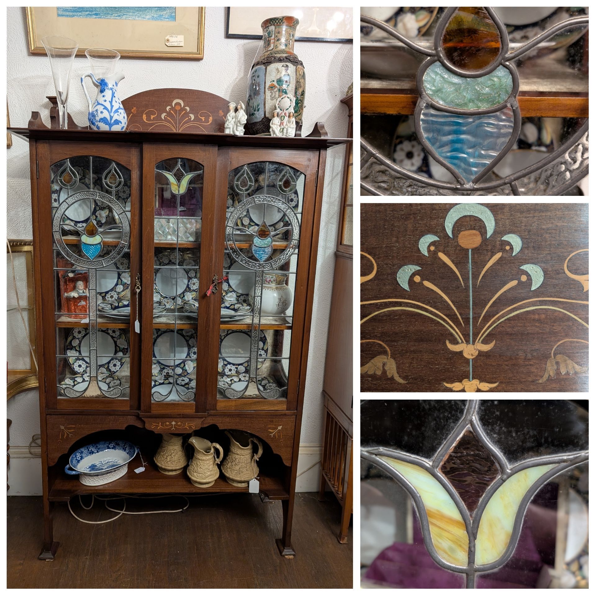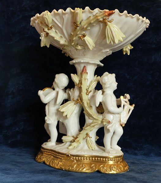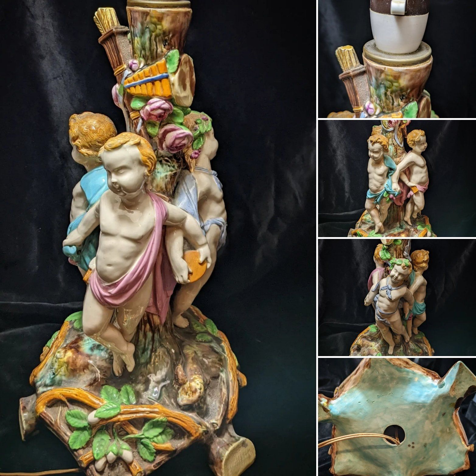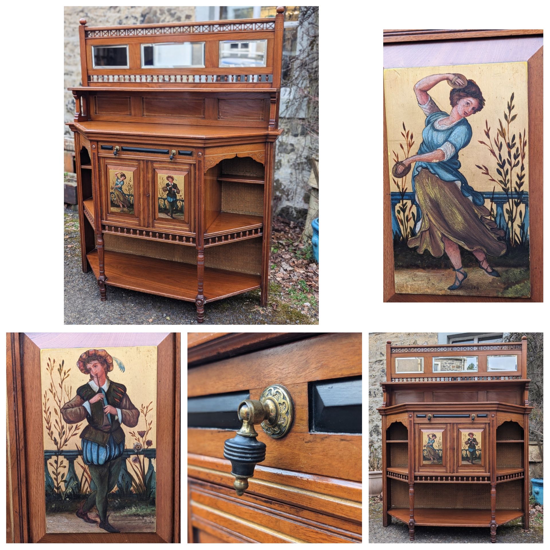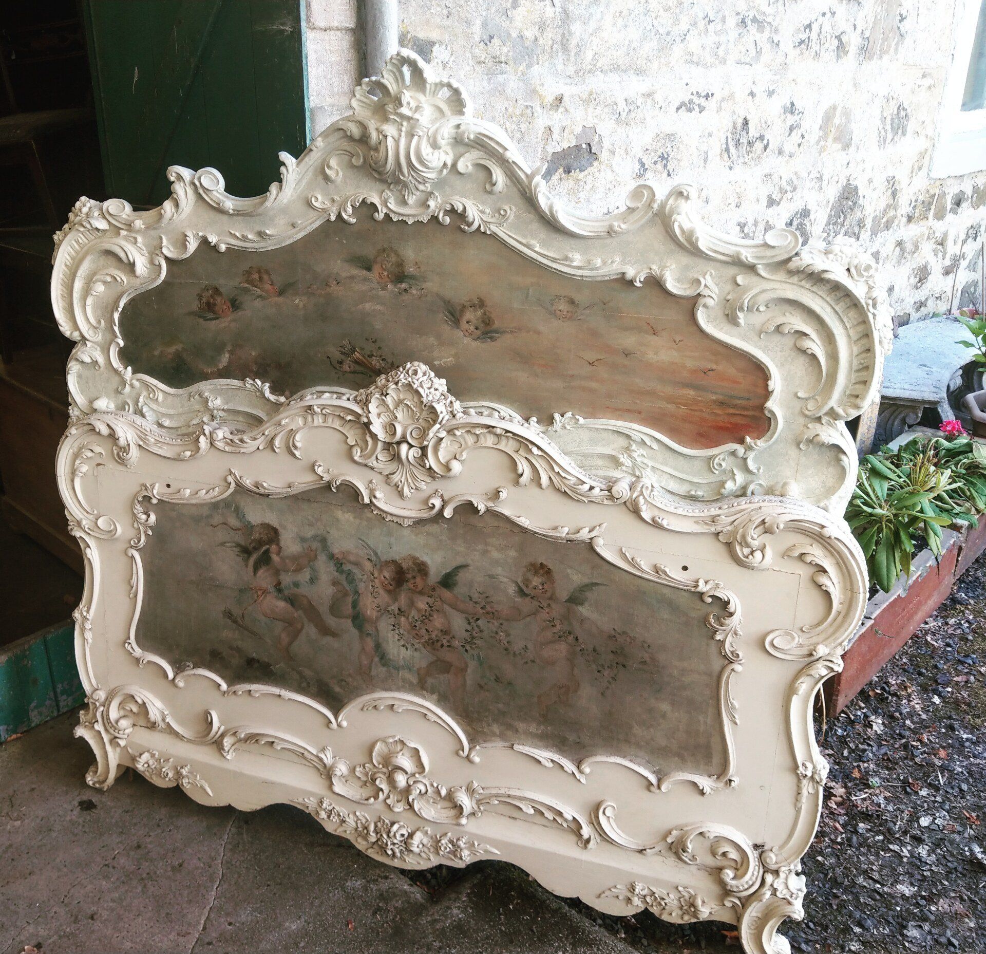 Floral applied decoration and cherub panels.