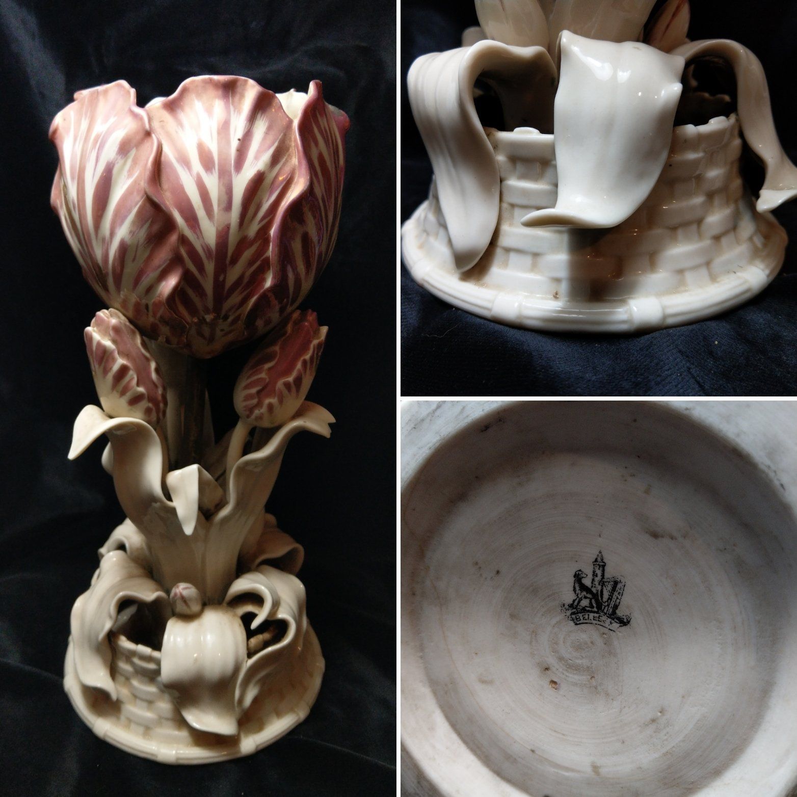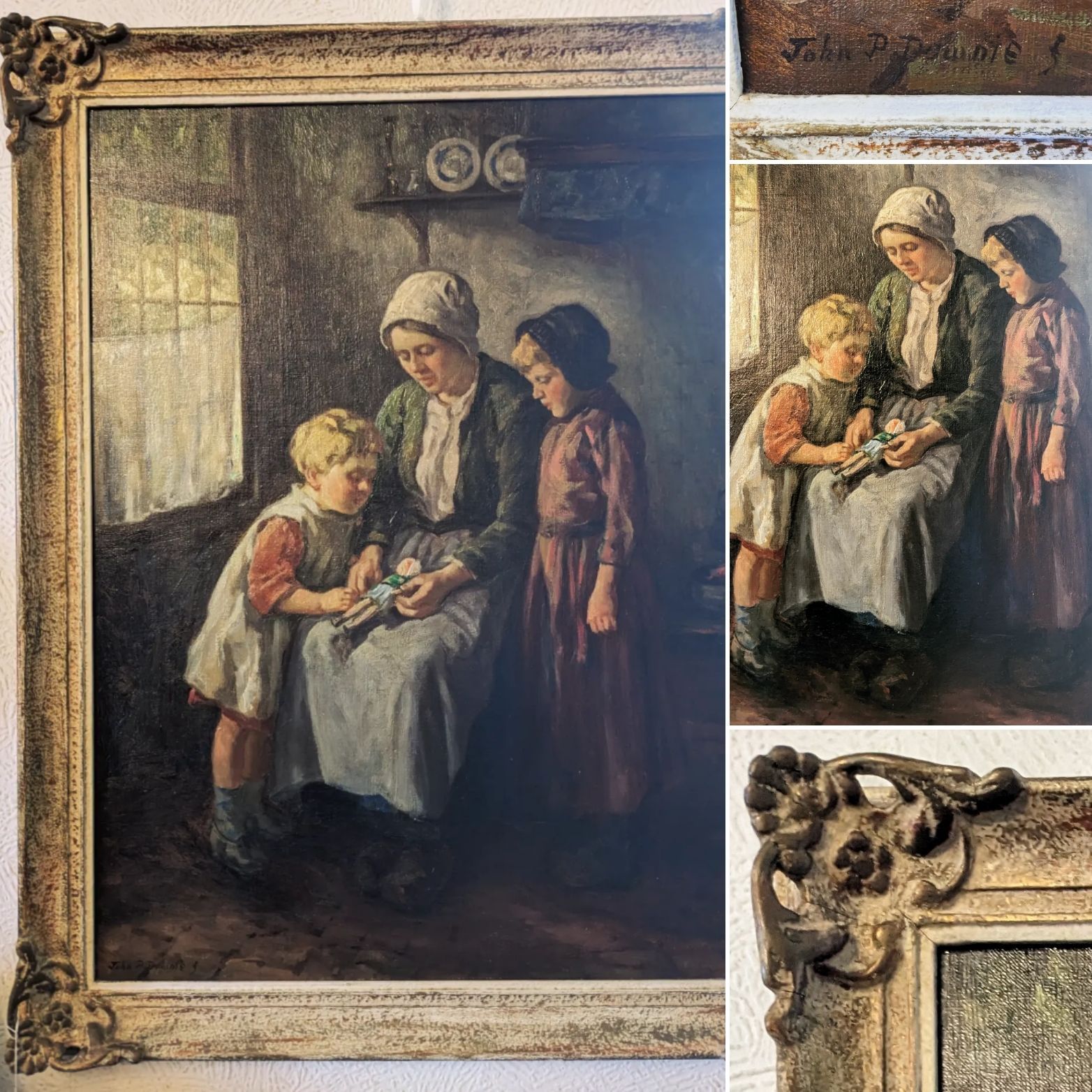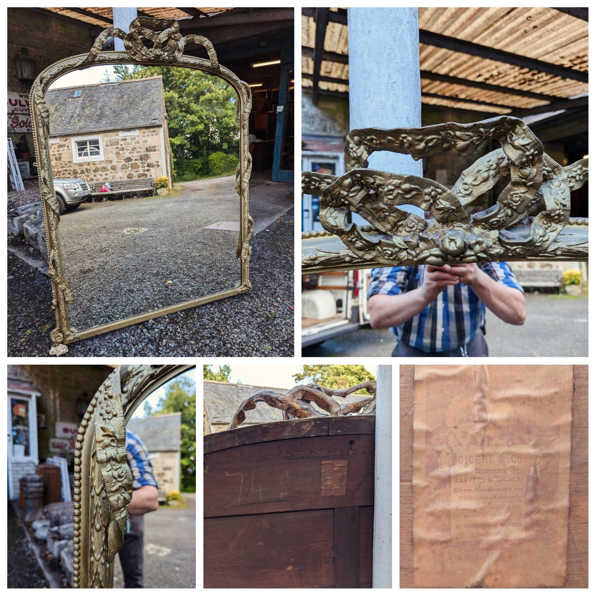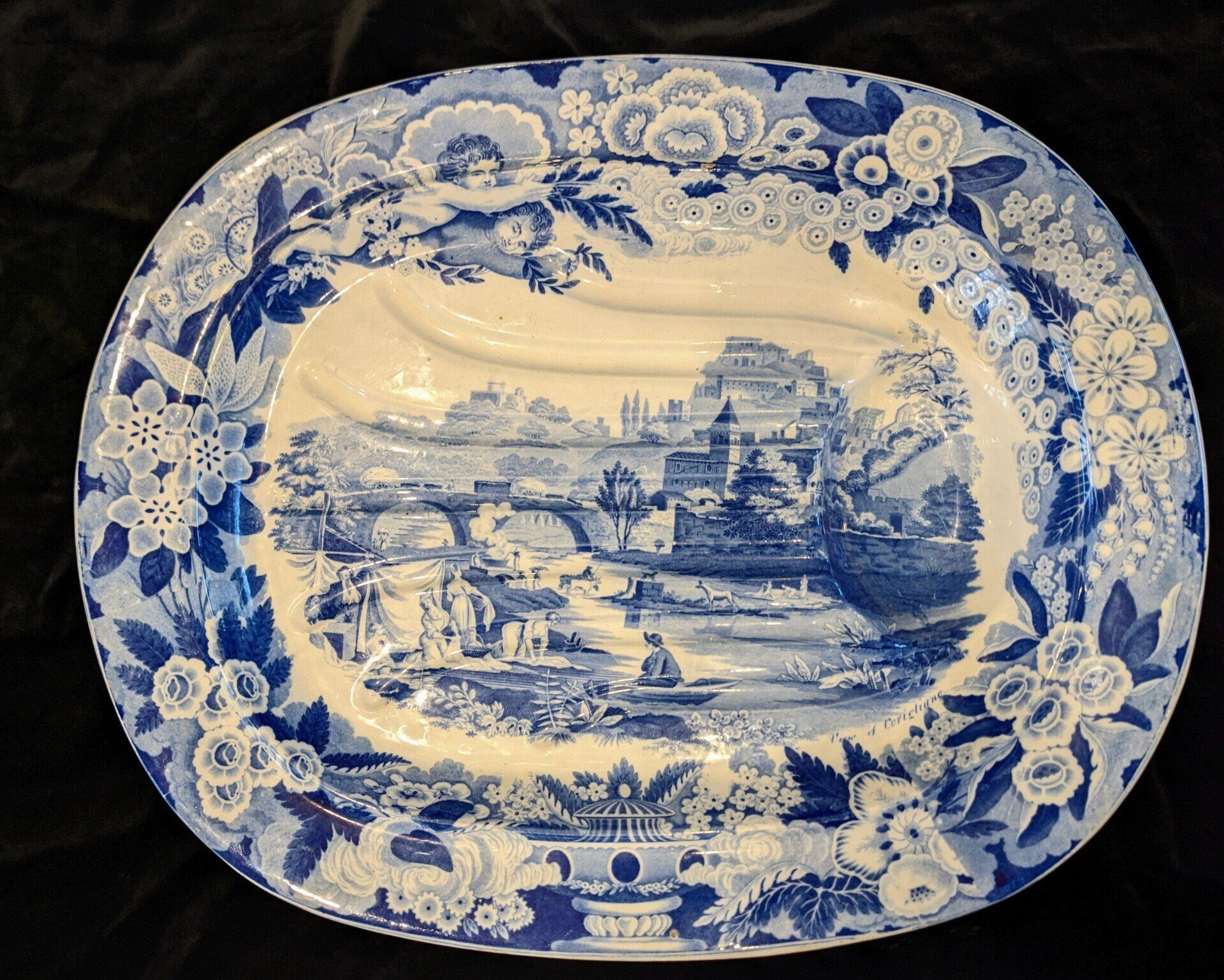 Floral applied decoration and cherub panels.