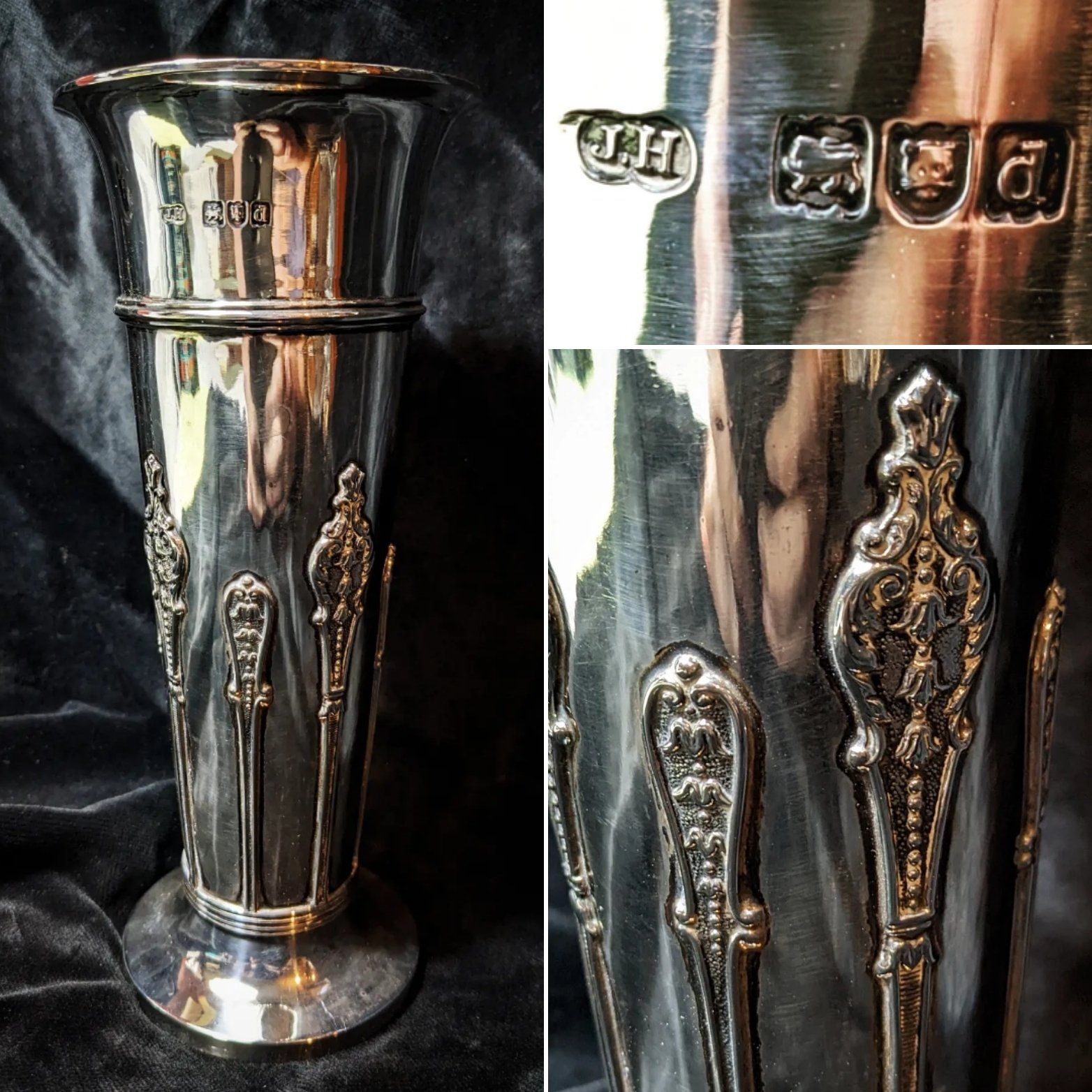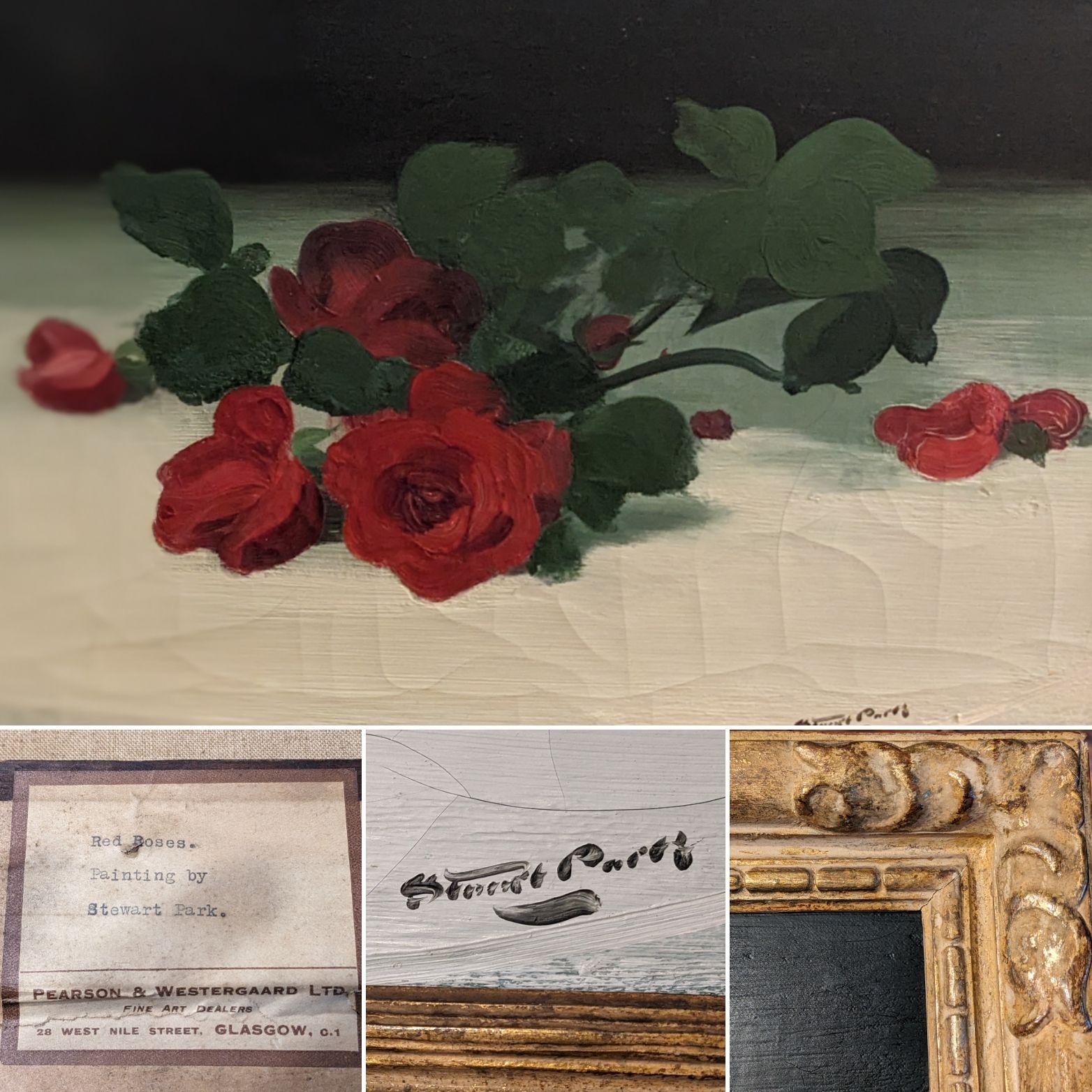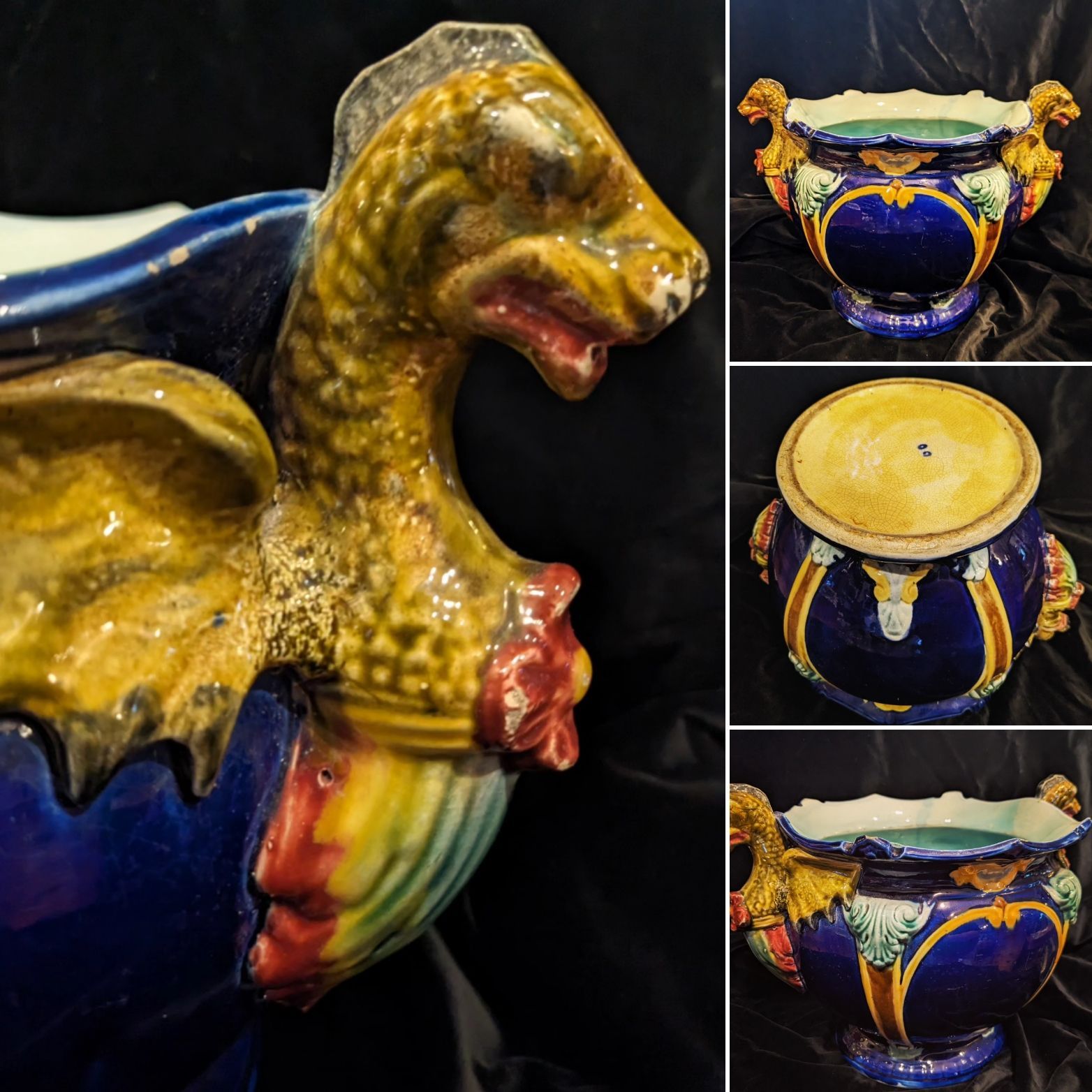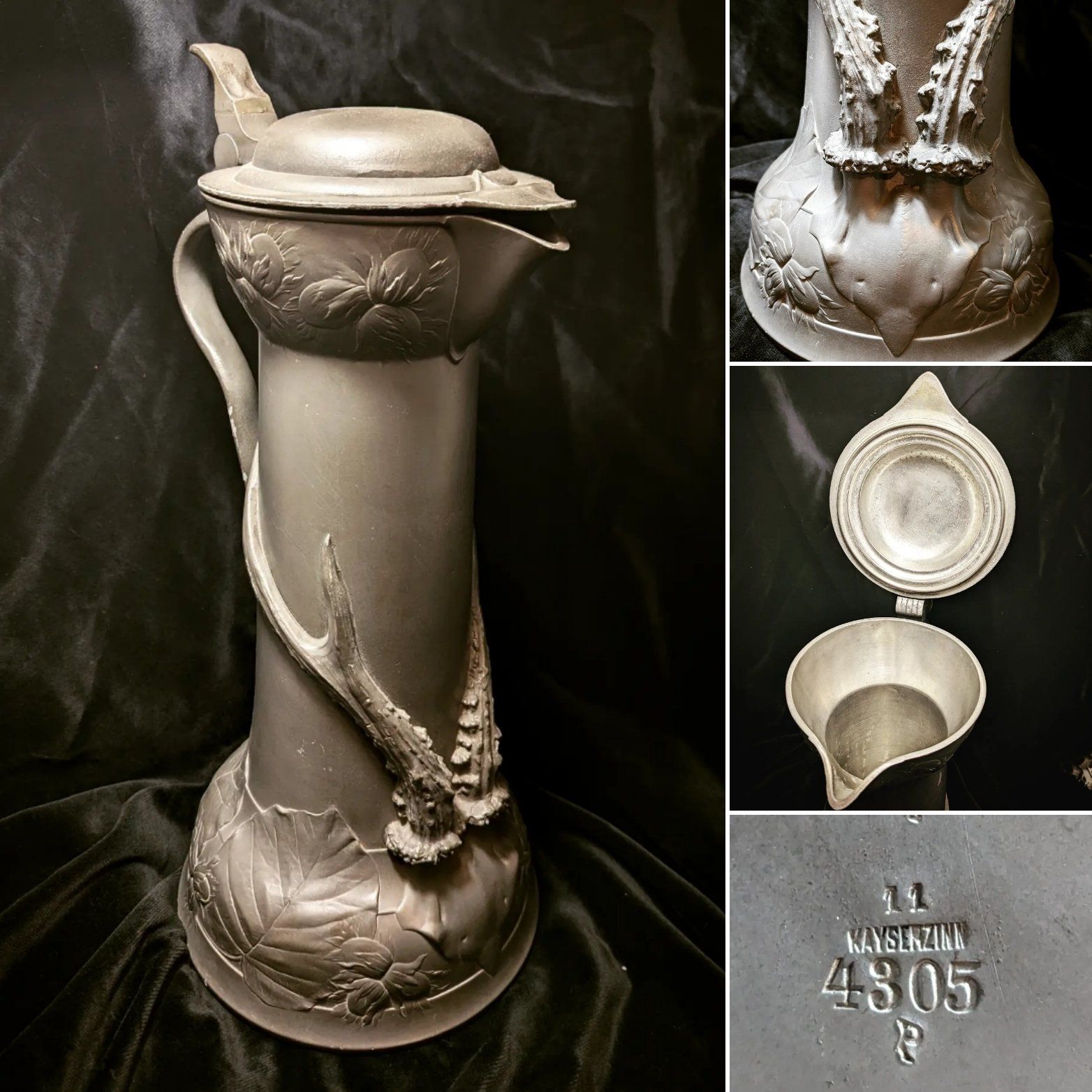 Floral applied decoration and cherub panels.