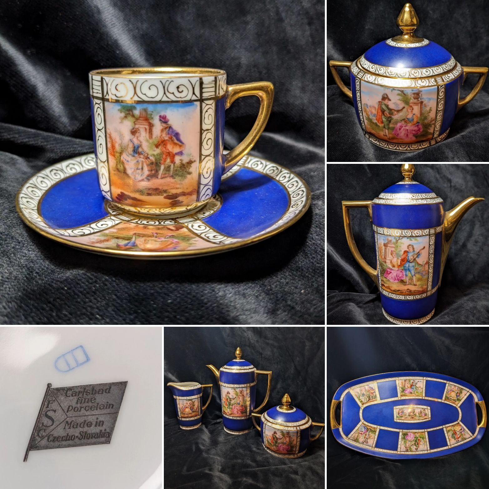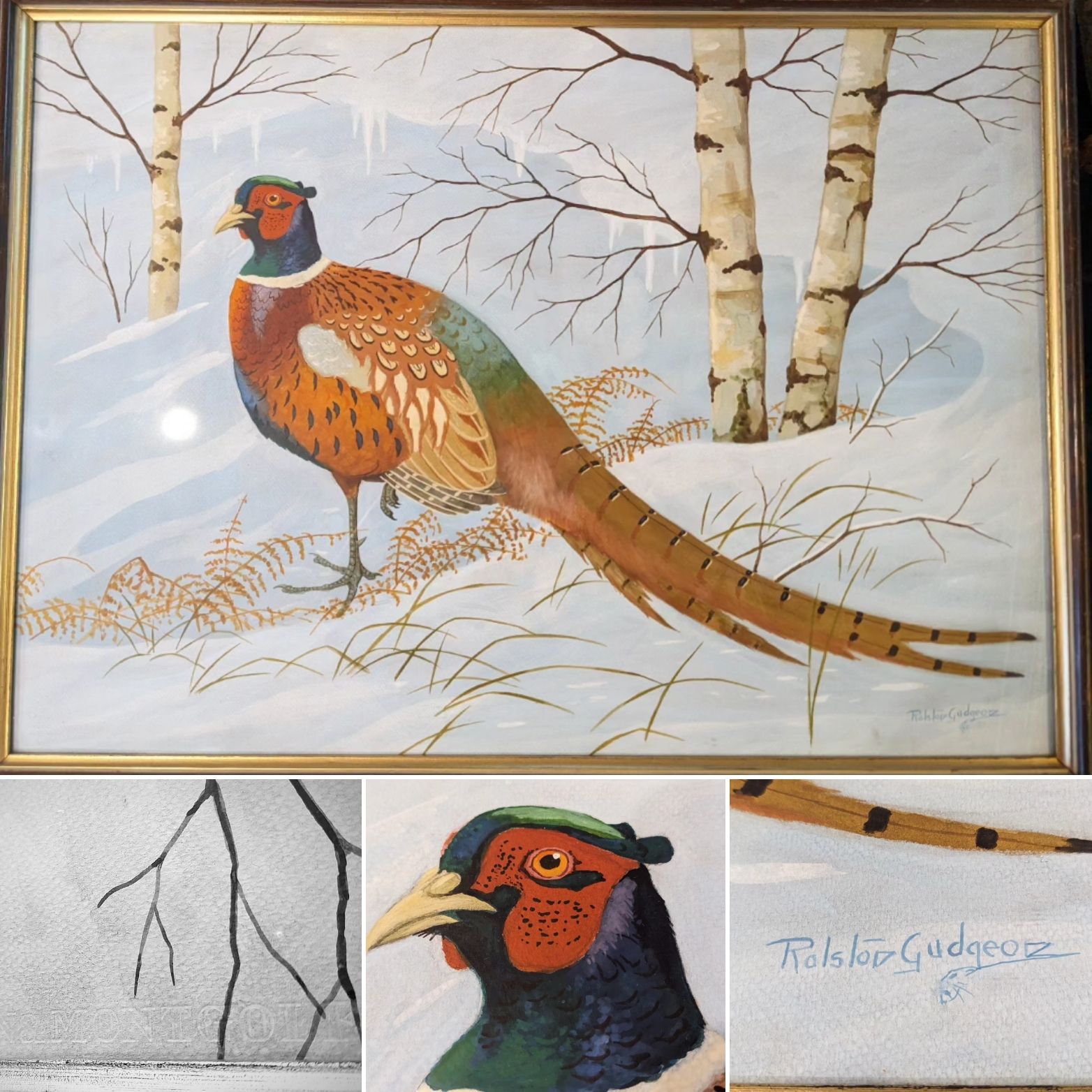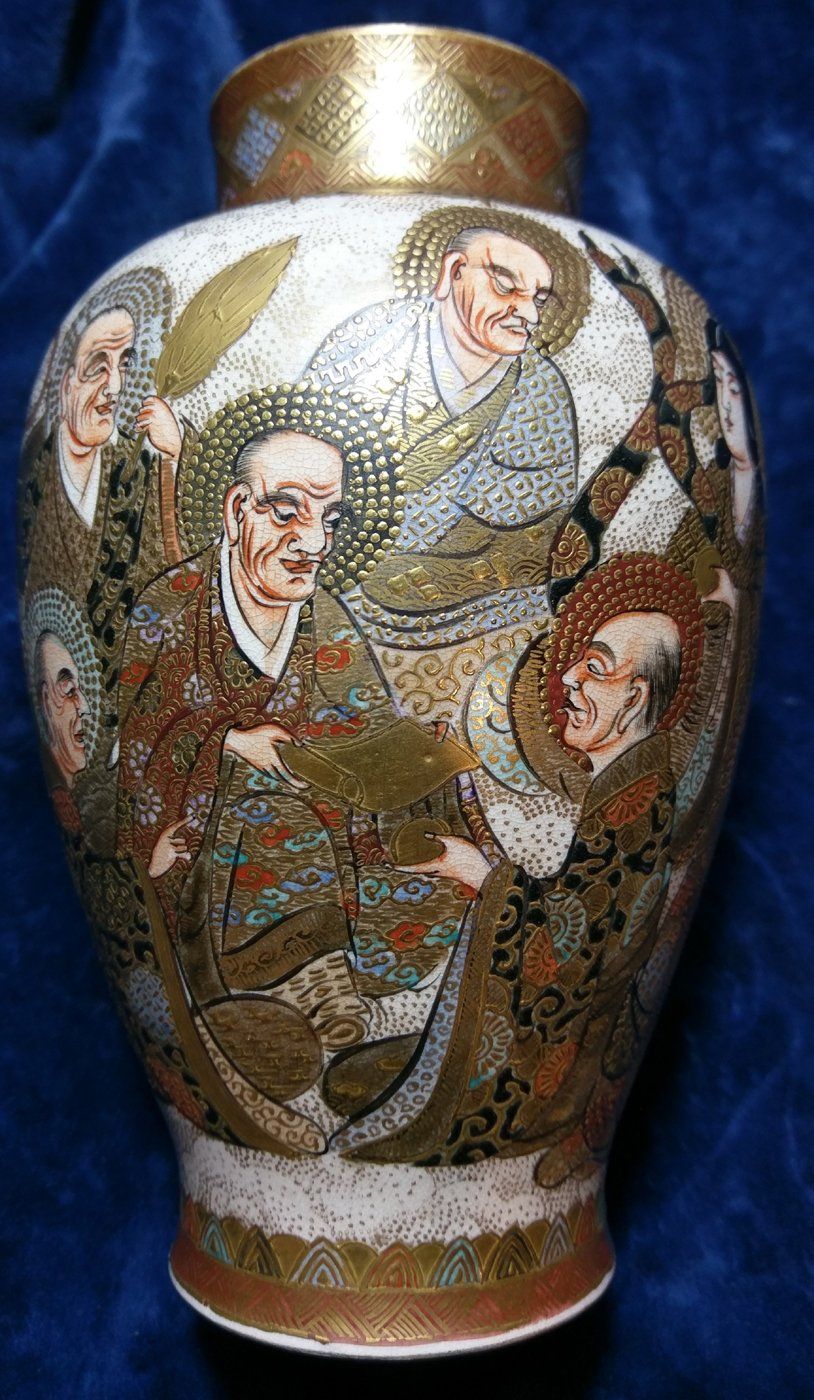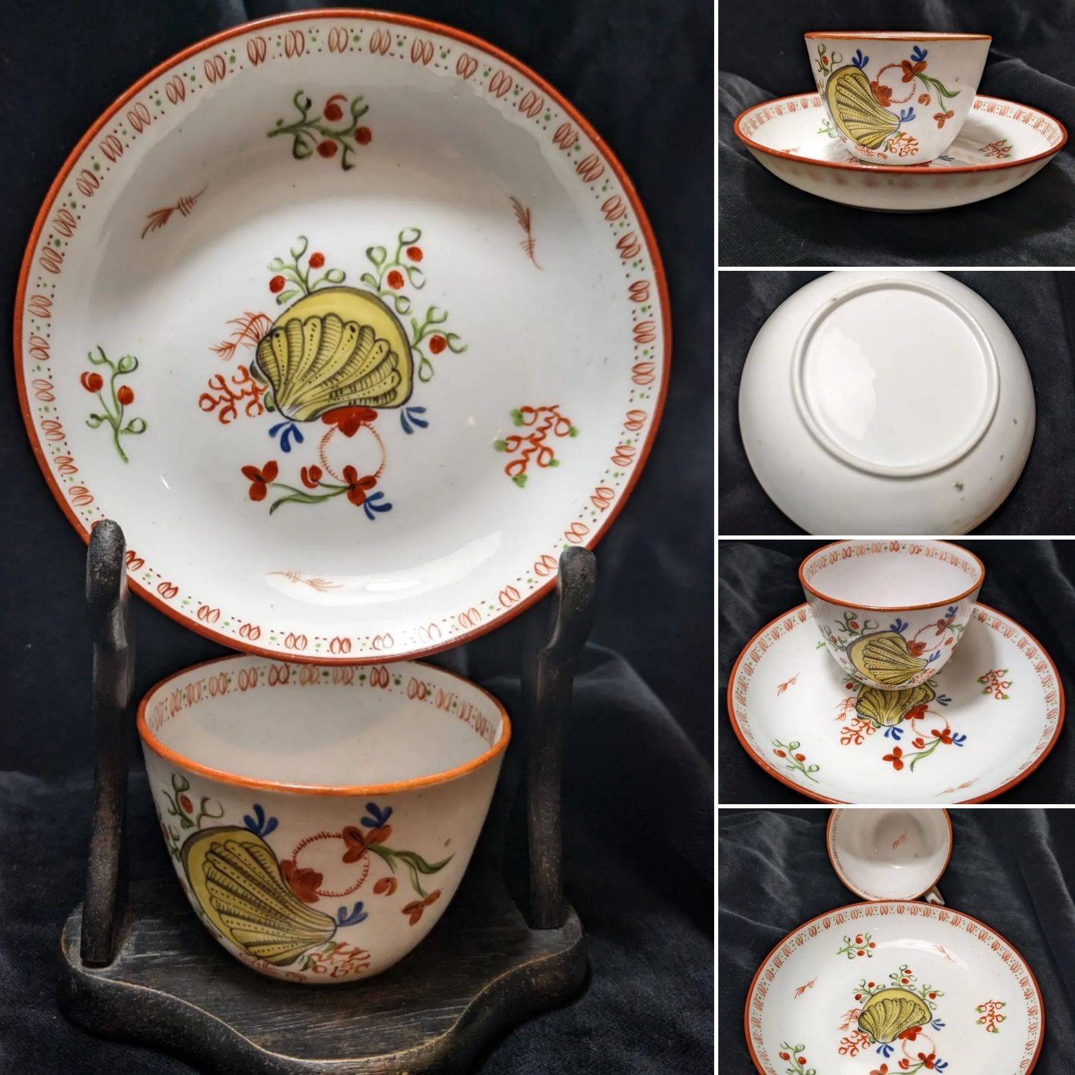 Floral applied decoration and cherub panels.