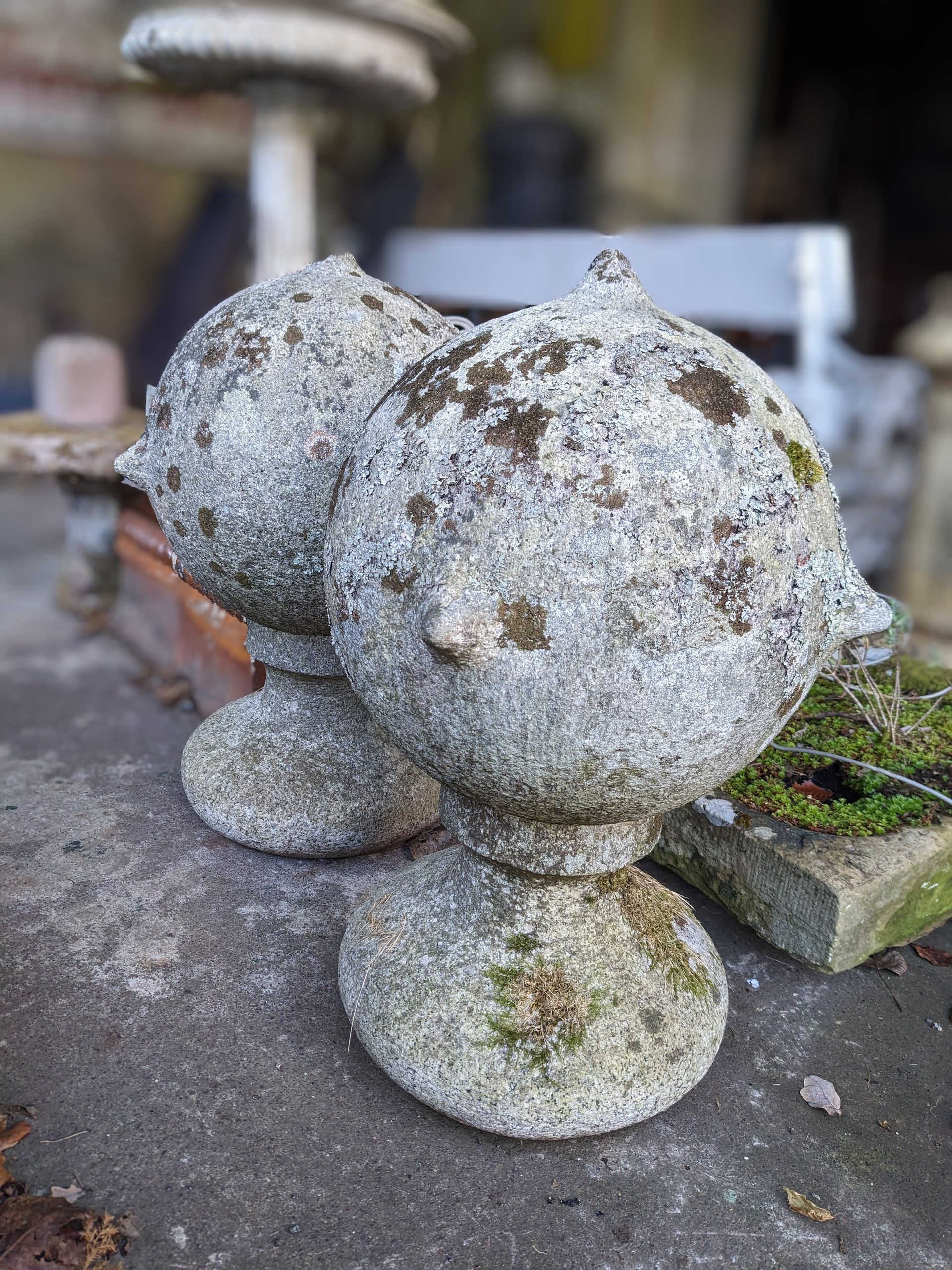 A pair of substantial granite finials.