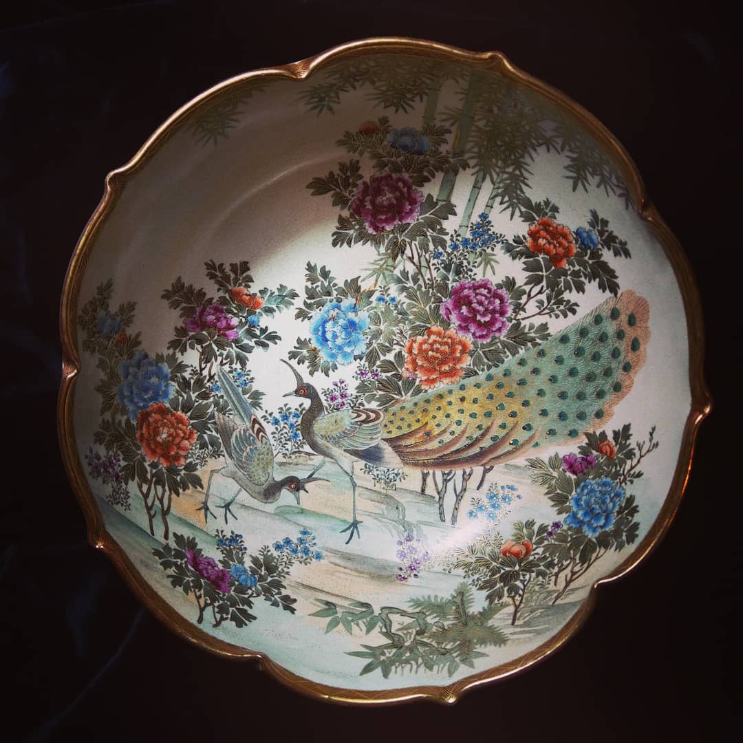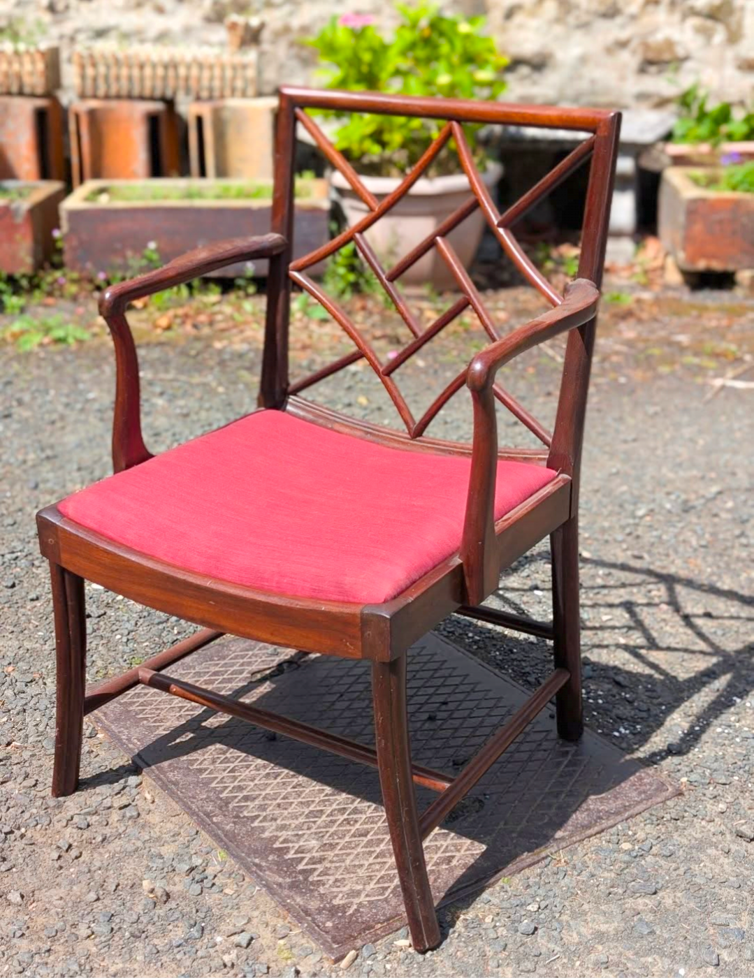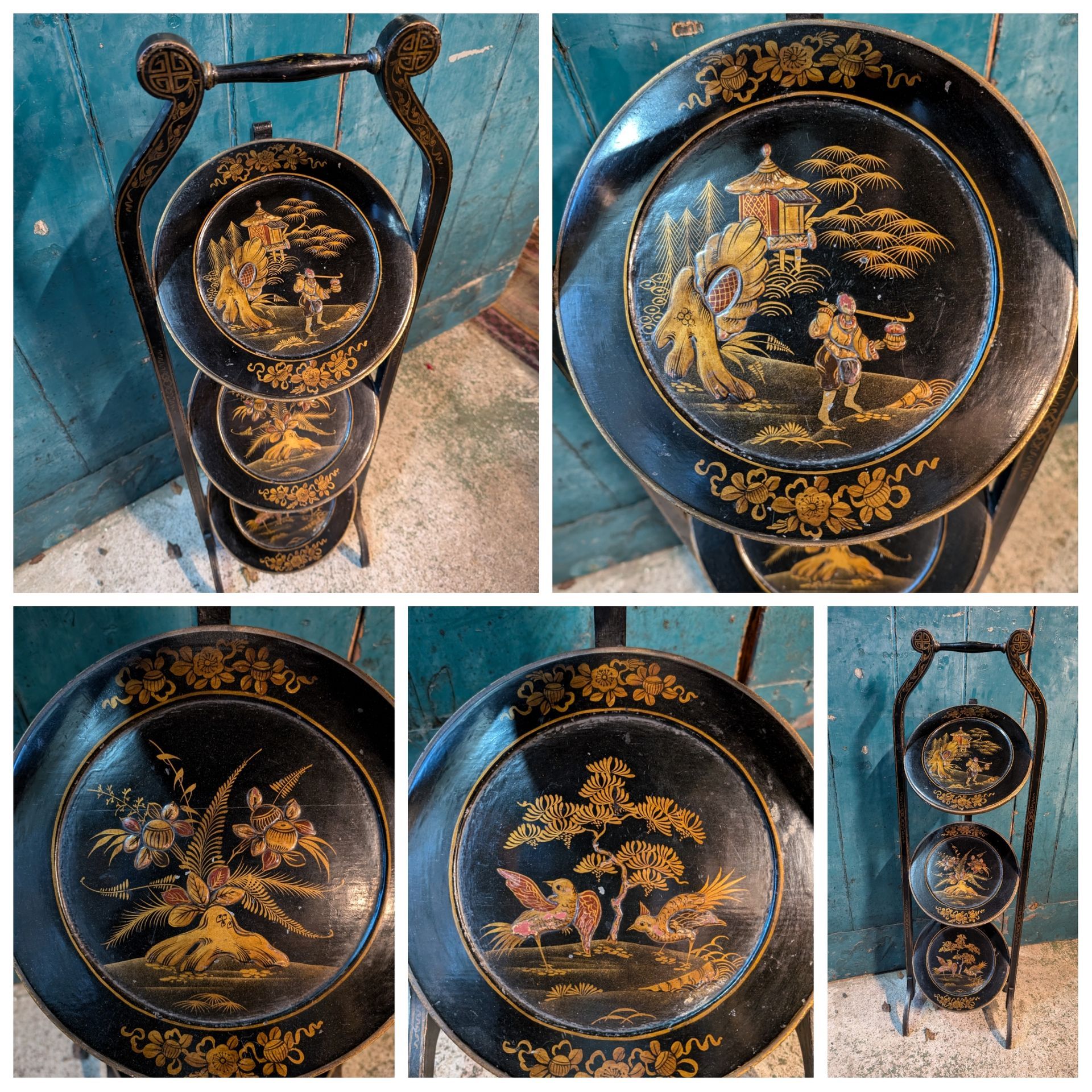 Geometric chinoiserie design to the back.