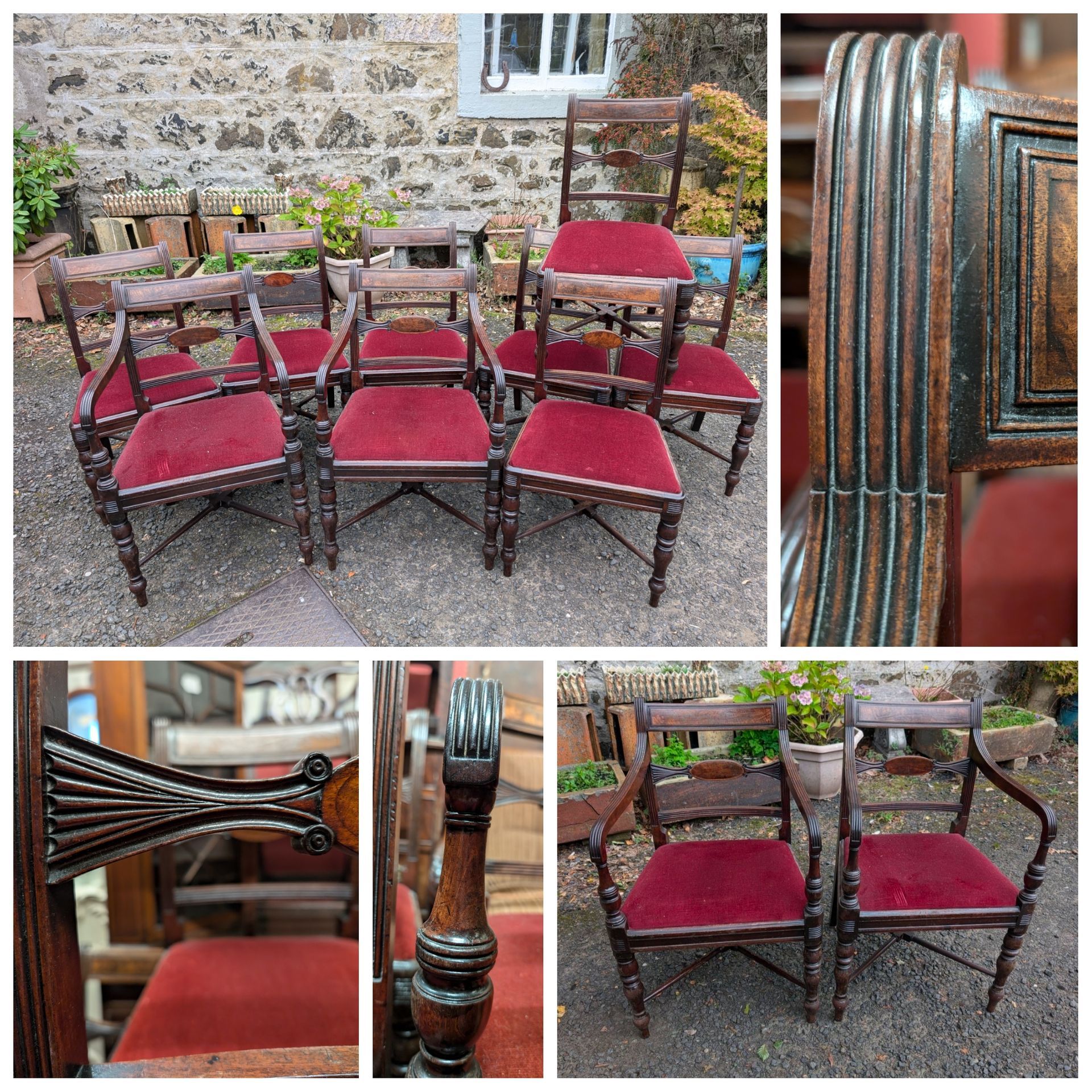 Pair of arm and eight hand chairs.