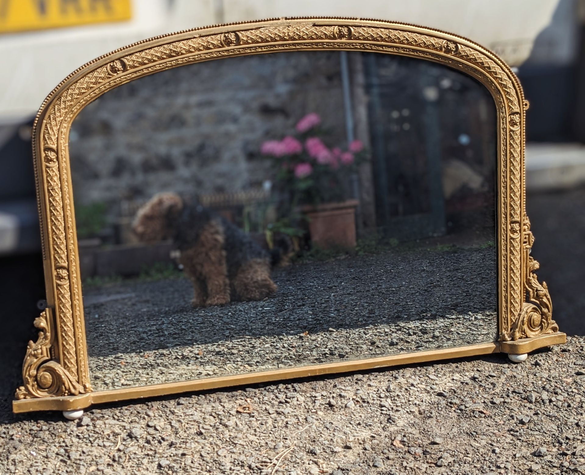 Decorative addition to gateposts, stairhead or pathway.