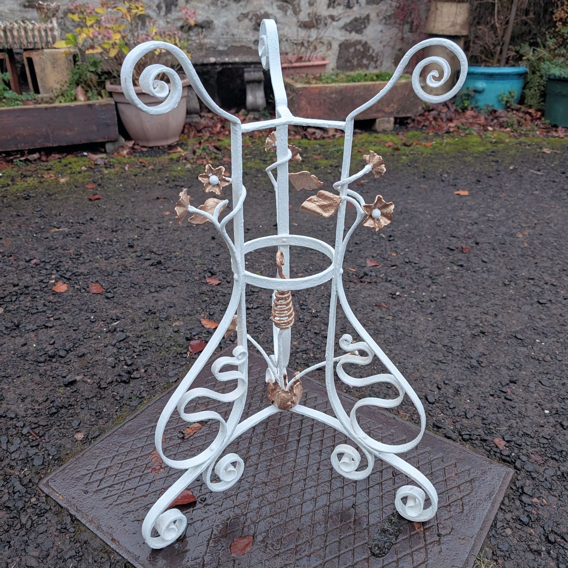 19thC wrought iron plant stand.