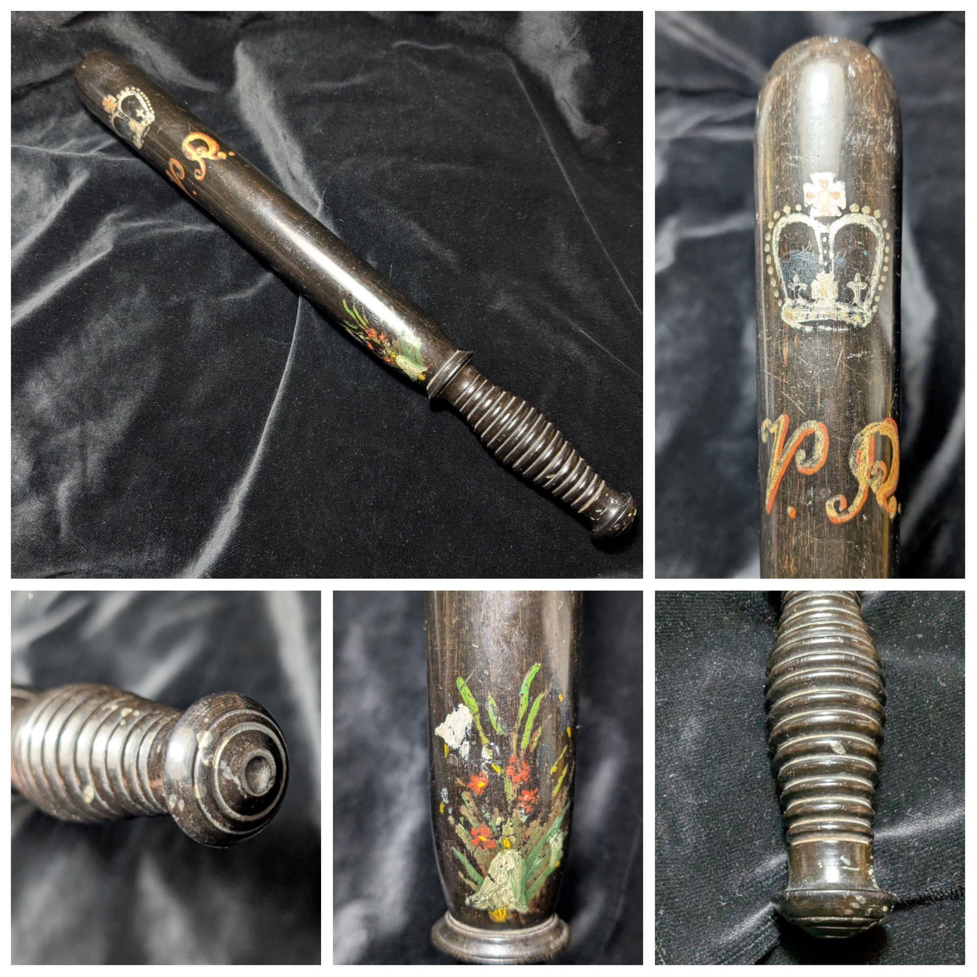 Painted Queen Victoria cipher and decoration.