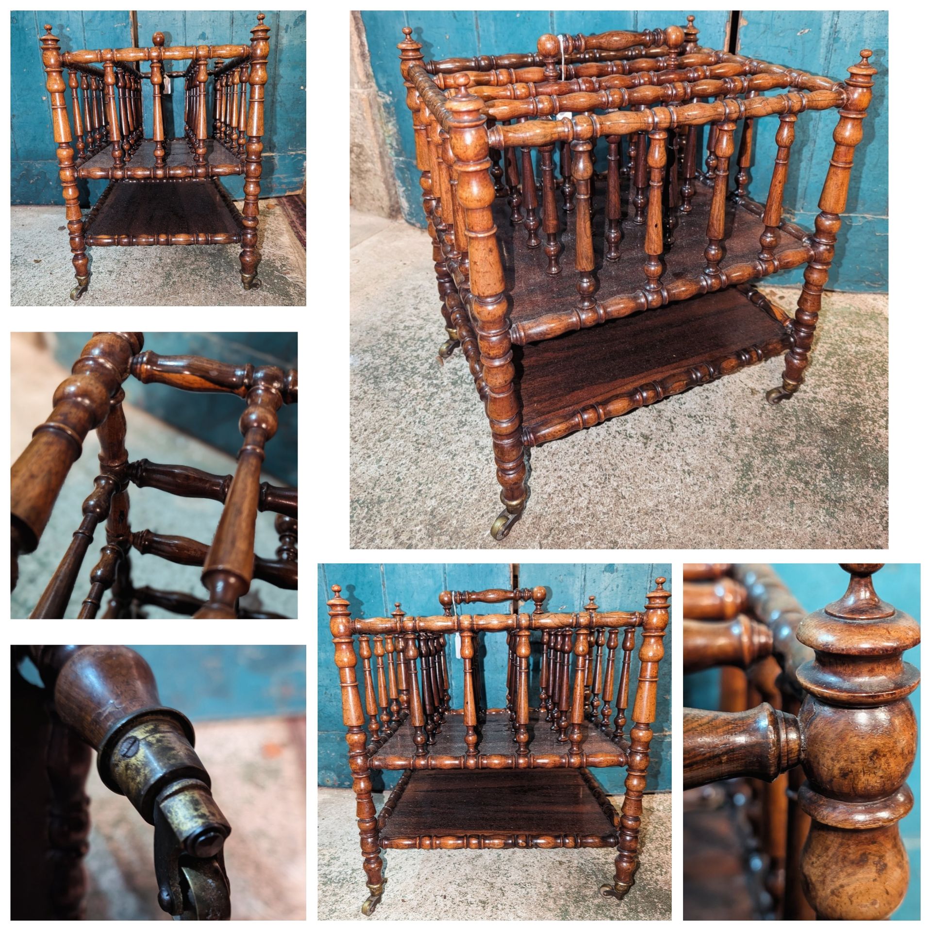 Original brass casters on girthy baluster legs.