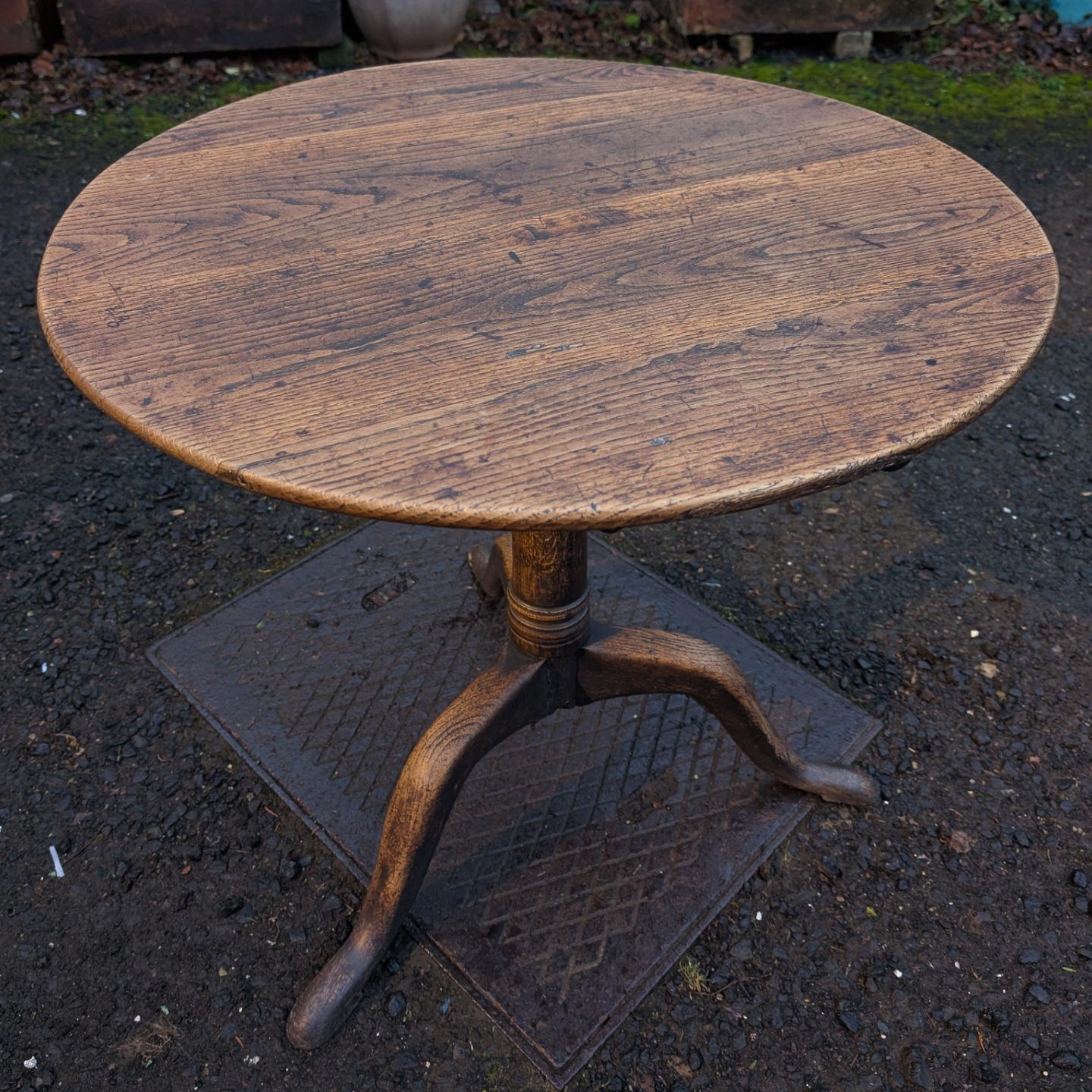 Rustic oak (&elm) pedestal supper or occasional table.