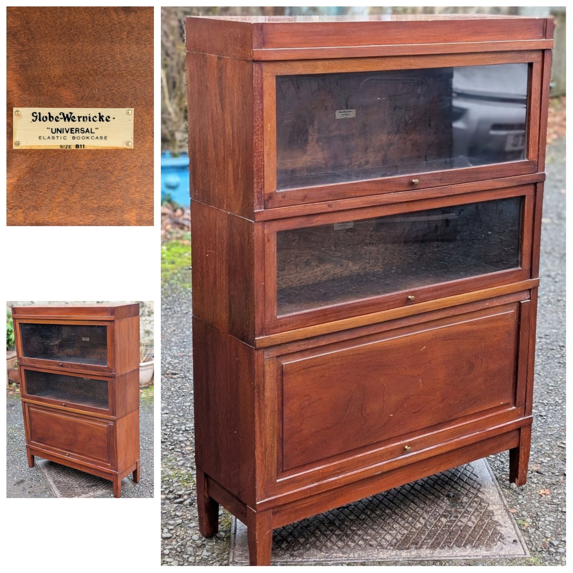 Mahogany sectional or stacking barristers bookcase.
