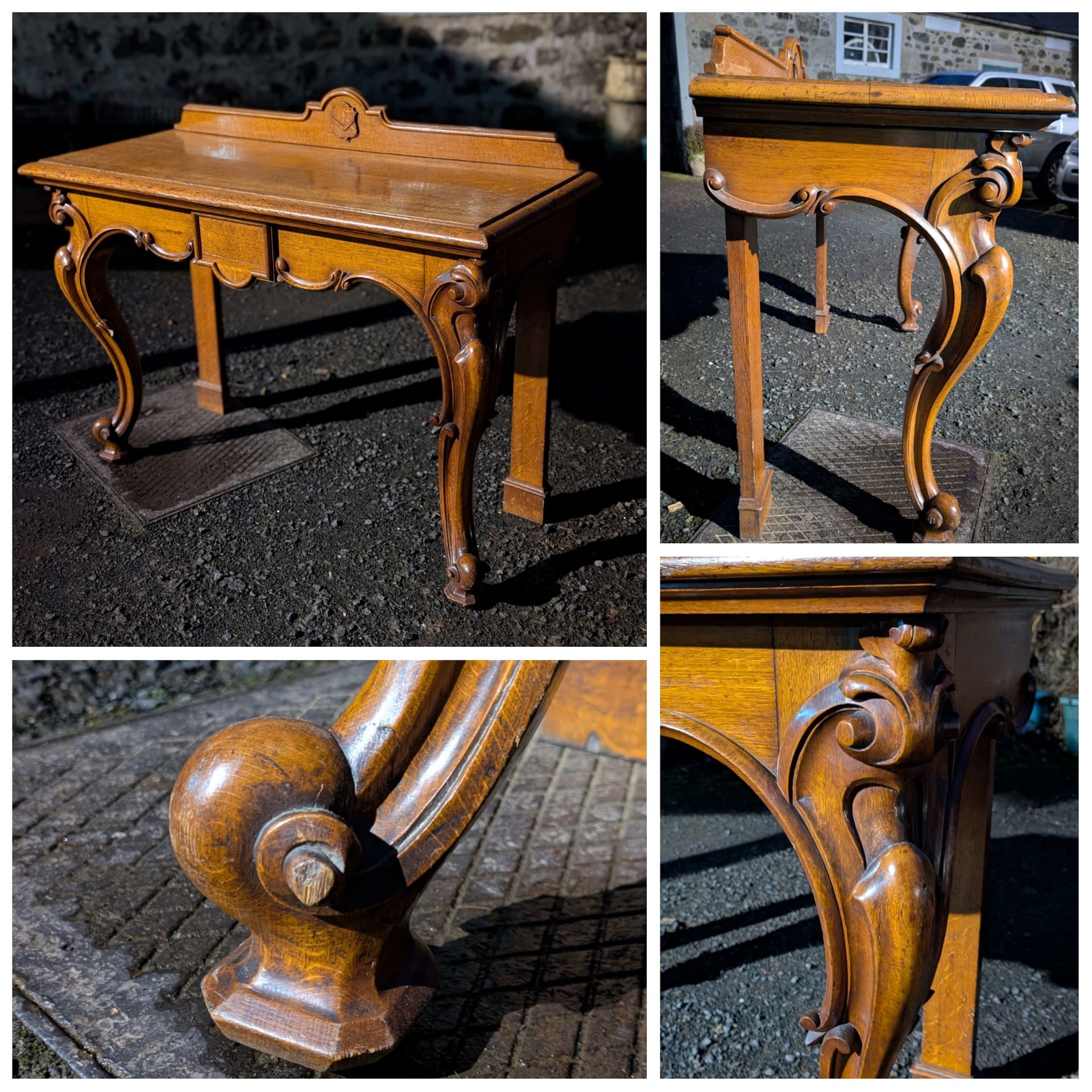 Large and impressive carved oak console table.