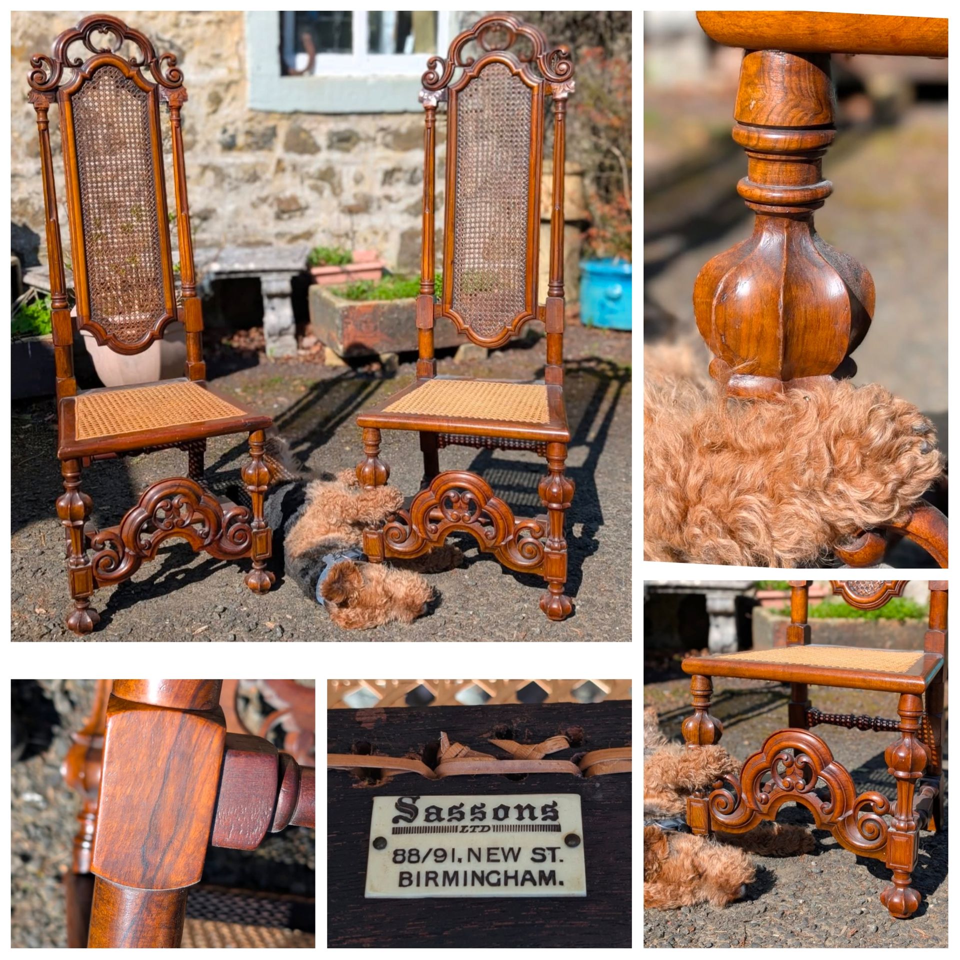 Good quality first half 20thC chairs with the trade label of Sassons, Birmingham.