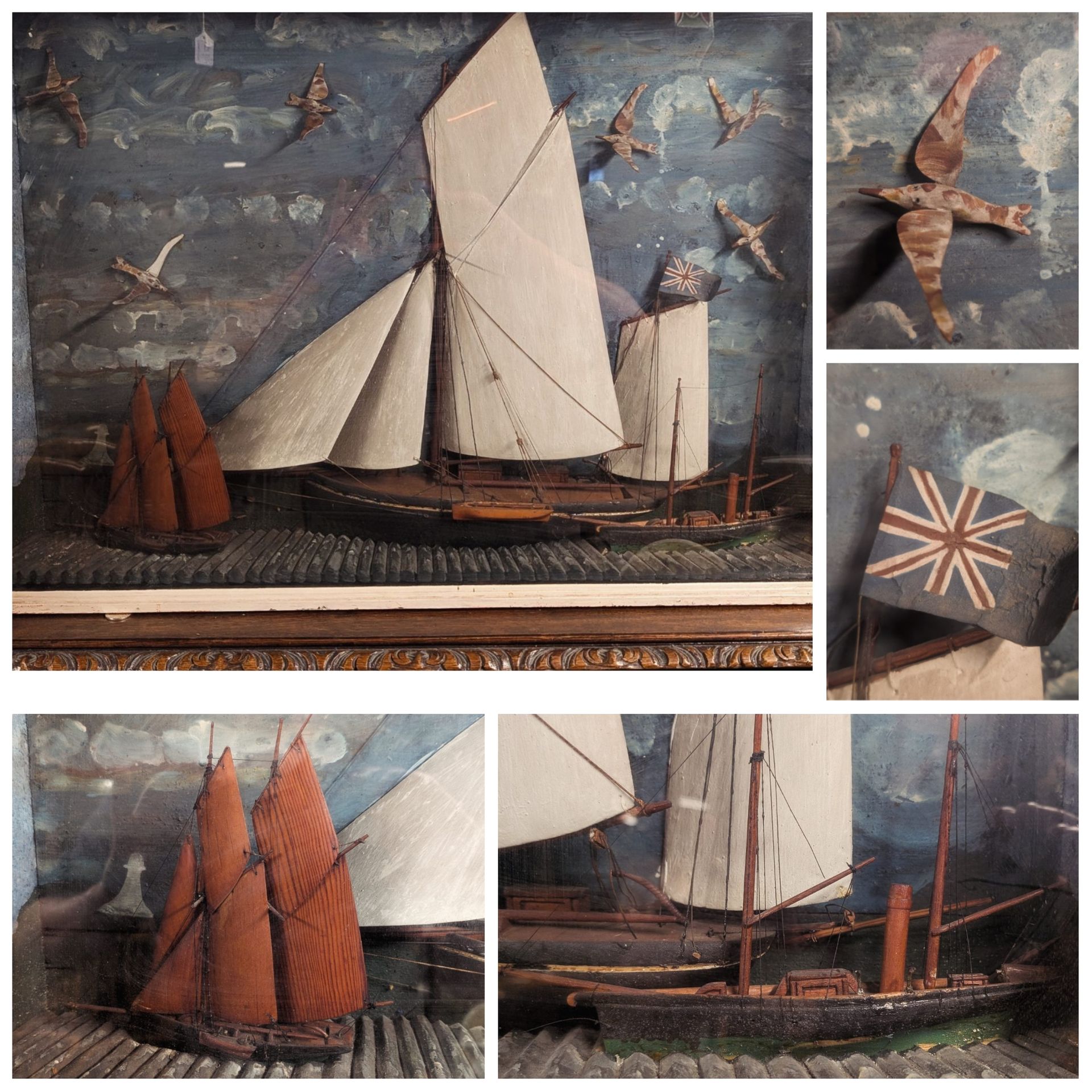 Cased 3 ship diorama.
