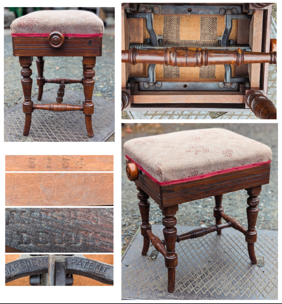Rise and fall 19thC piano stool.