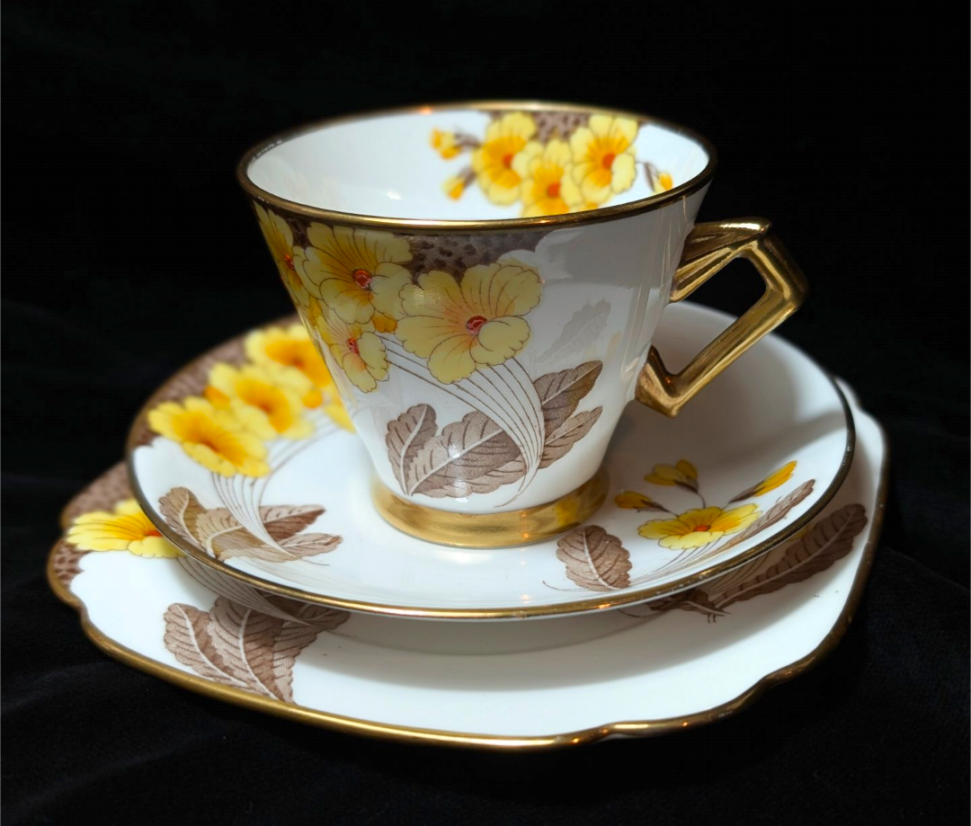 Stylised water lilies on a yellow ground.