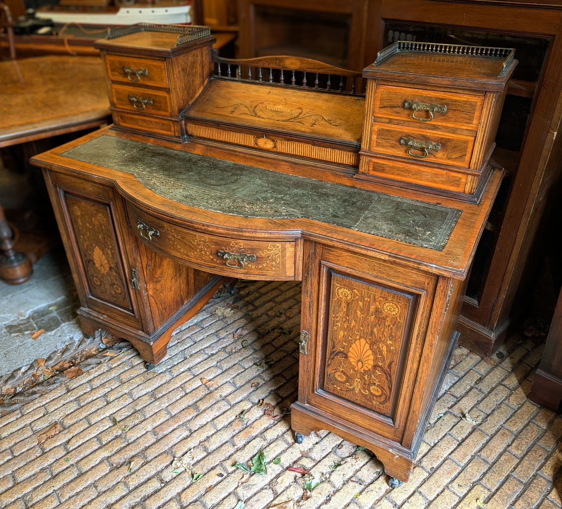 Good quality late 19thC inlaid rosewood desk.