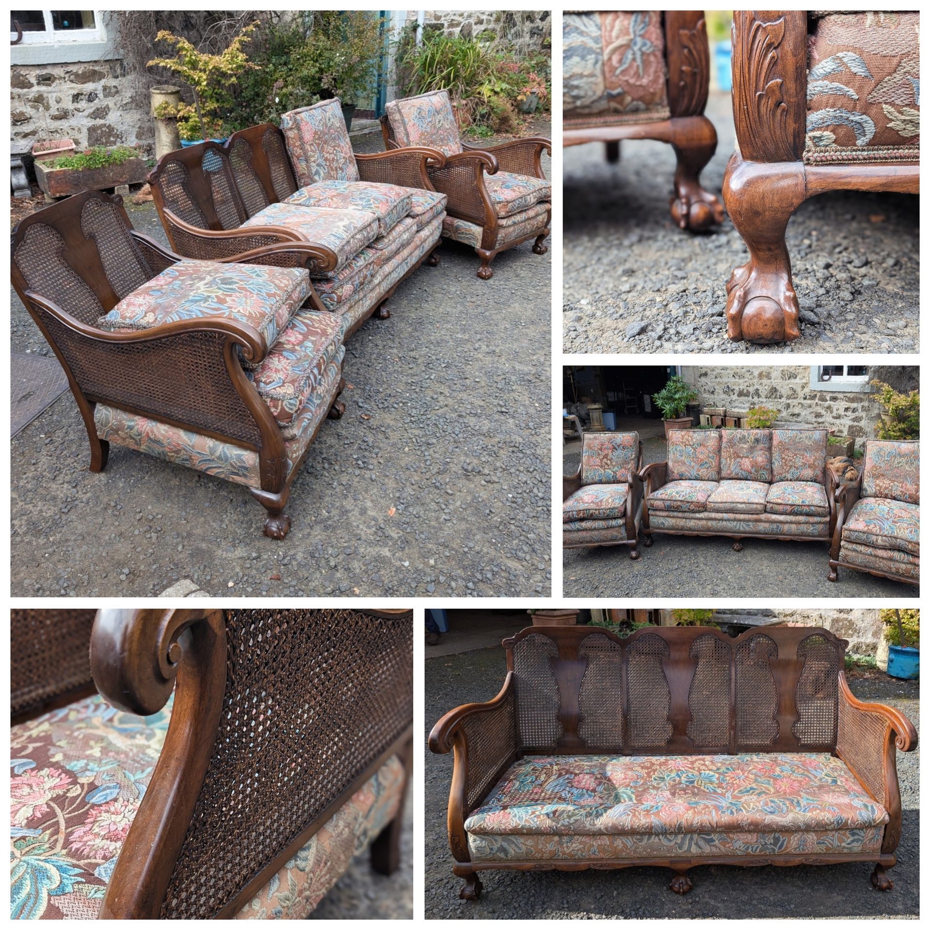 Mahogany double caned bergere 3 piece suite.