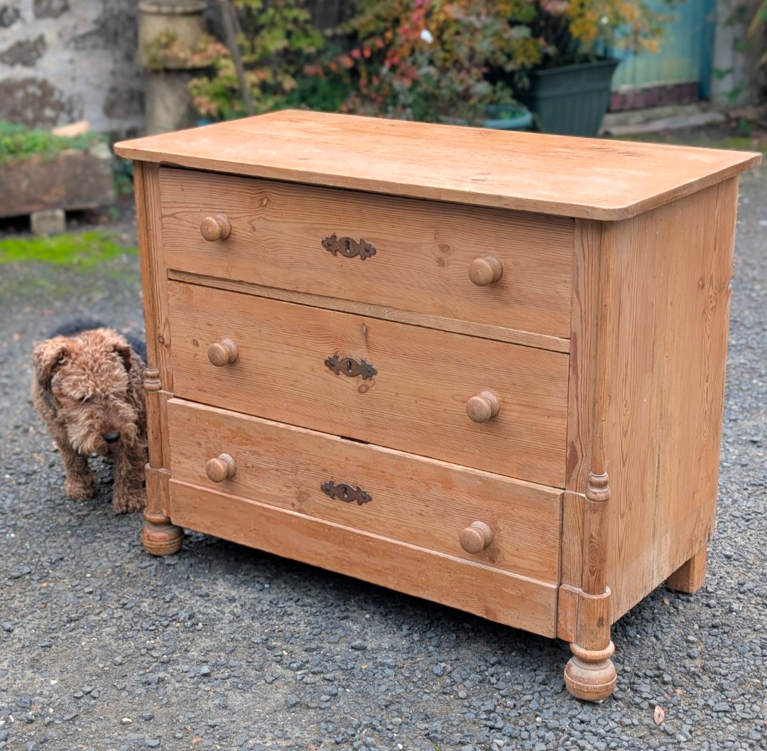 19thC stripped pine chest of drawers.