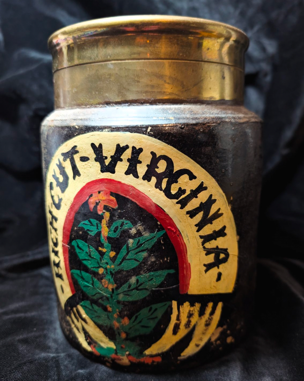 Decorated as a marriage or dower chest with family crest and two sets of initials.
