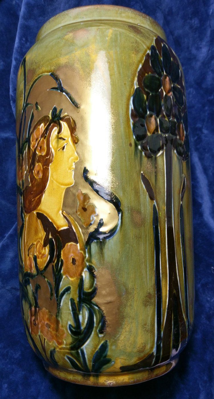 In the arts and crafts manner with naturalistic decoration.