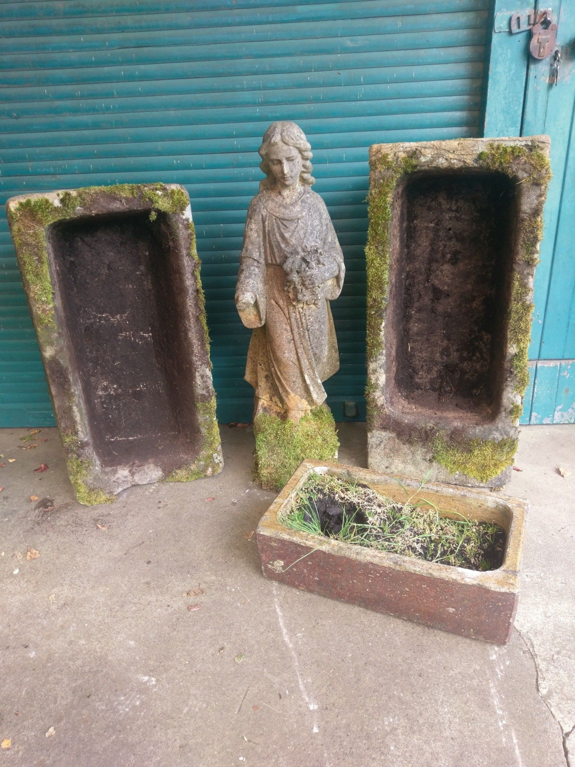 Statue sold, various stone and fireclay byre troughs etc in stock.