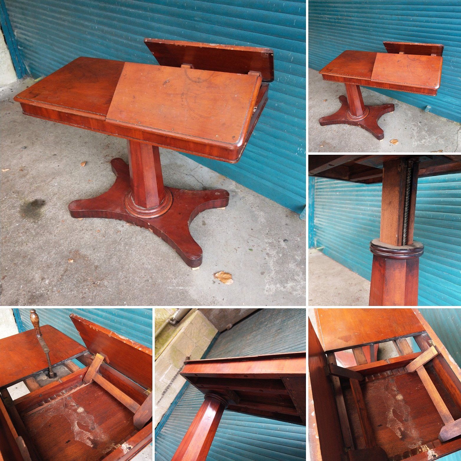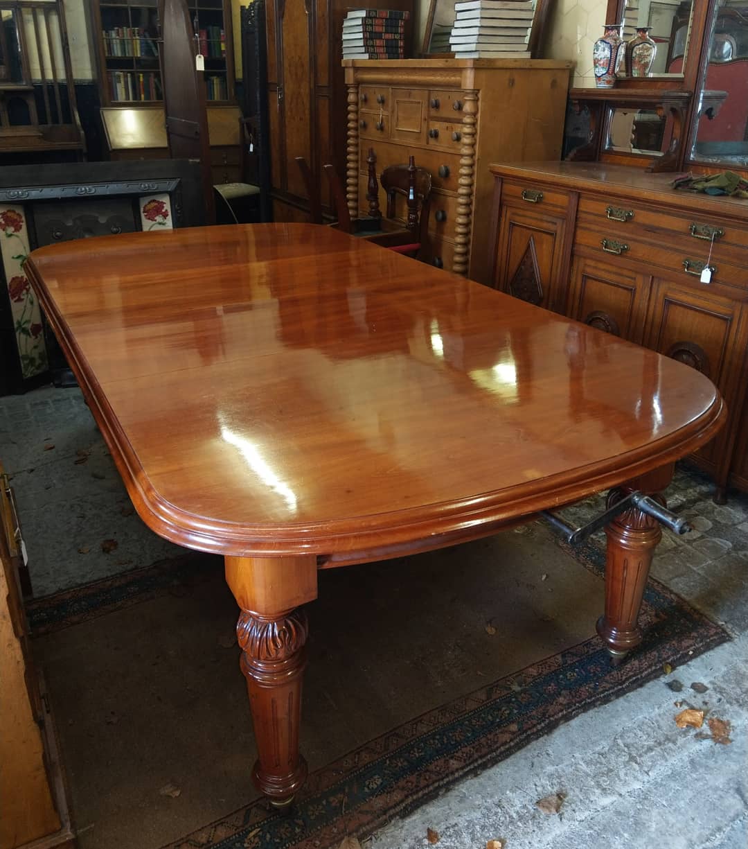 Single leaf 19thC mahogany wind out dining table.