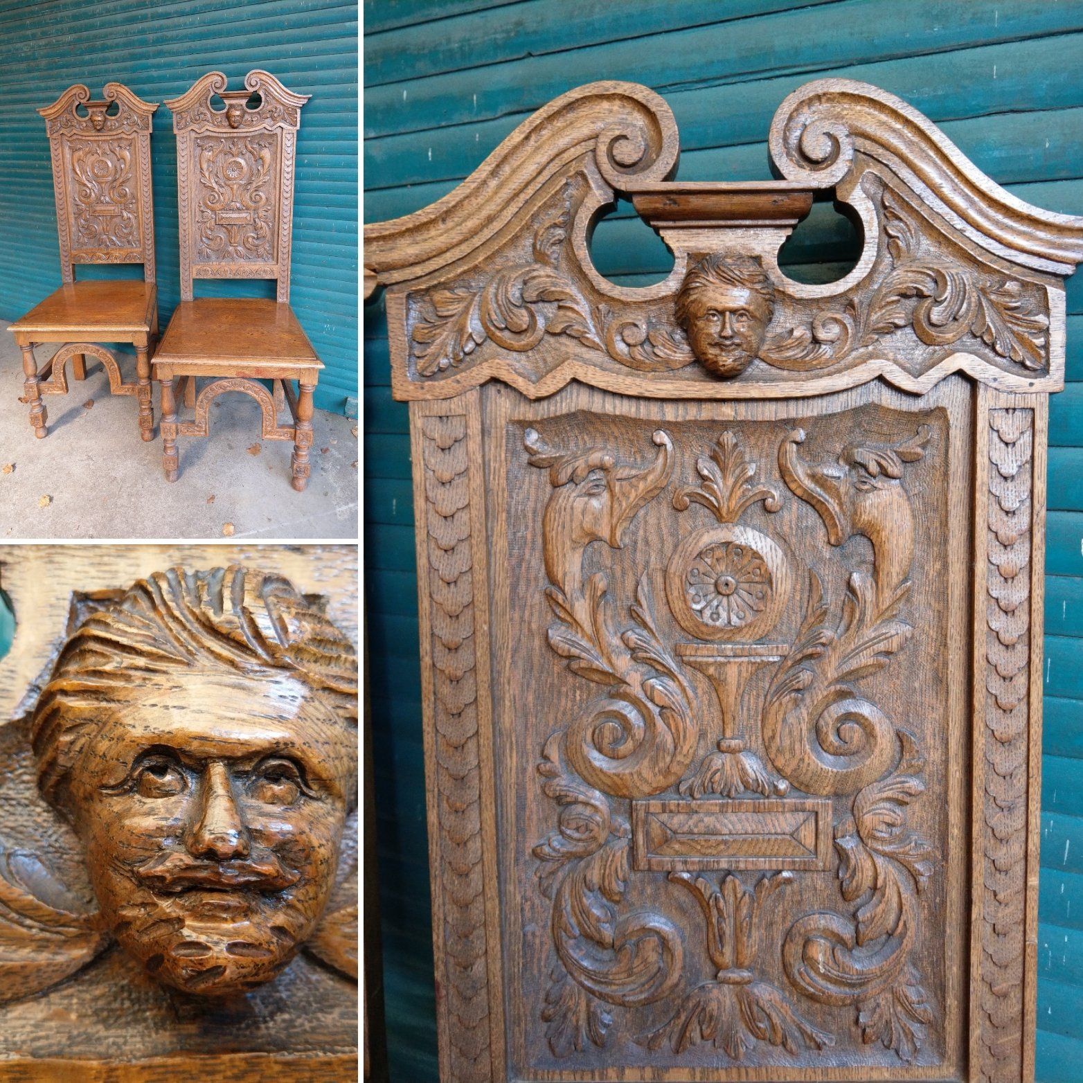 The armorial backs elaborately carved in the continental fashion.