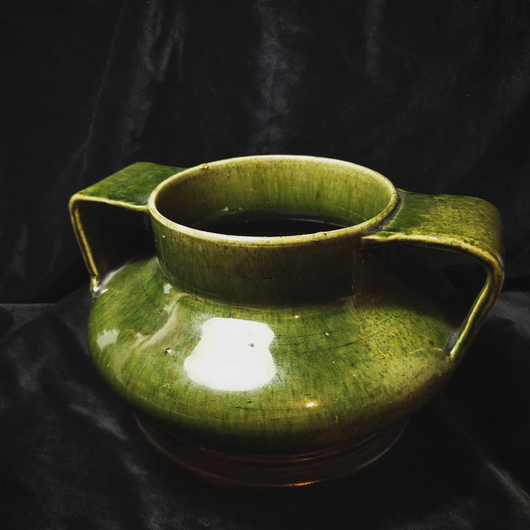 A substantial pot with strongly rivetted handle
