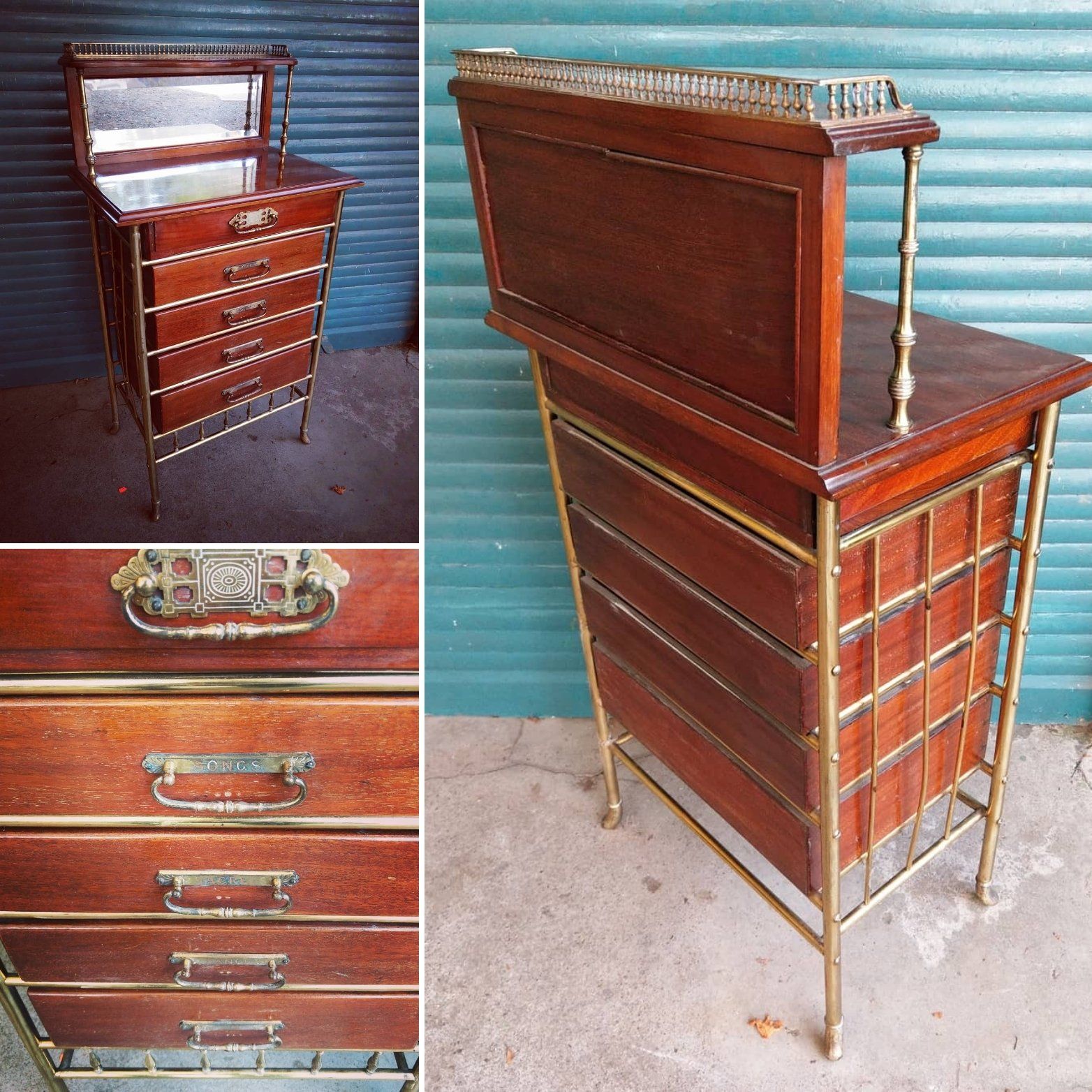 Gilded brass drawer furniture and galleries.