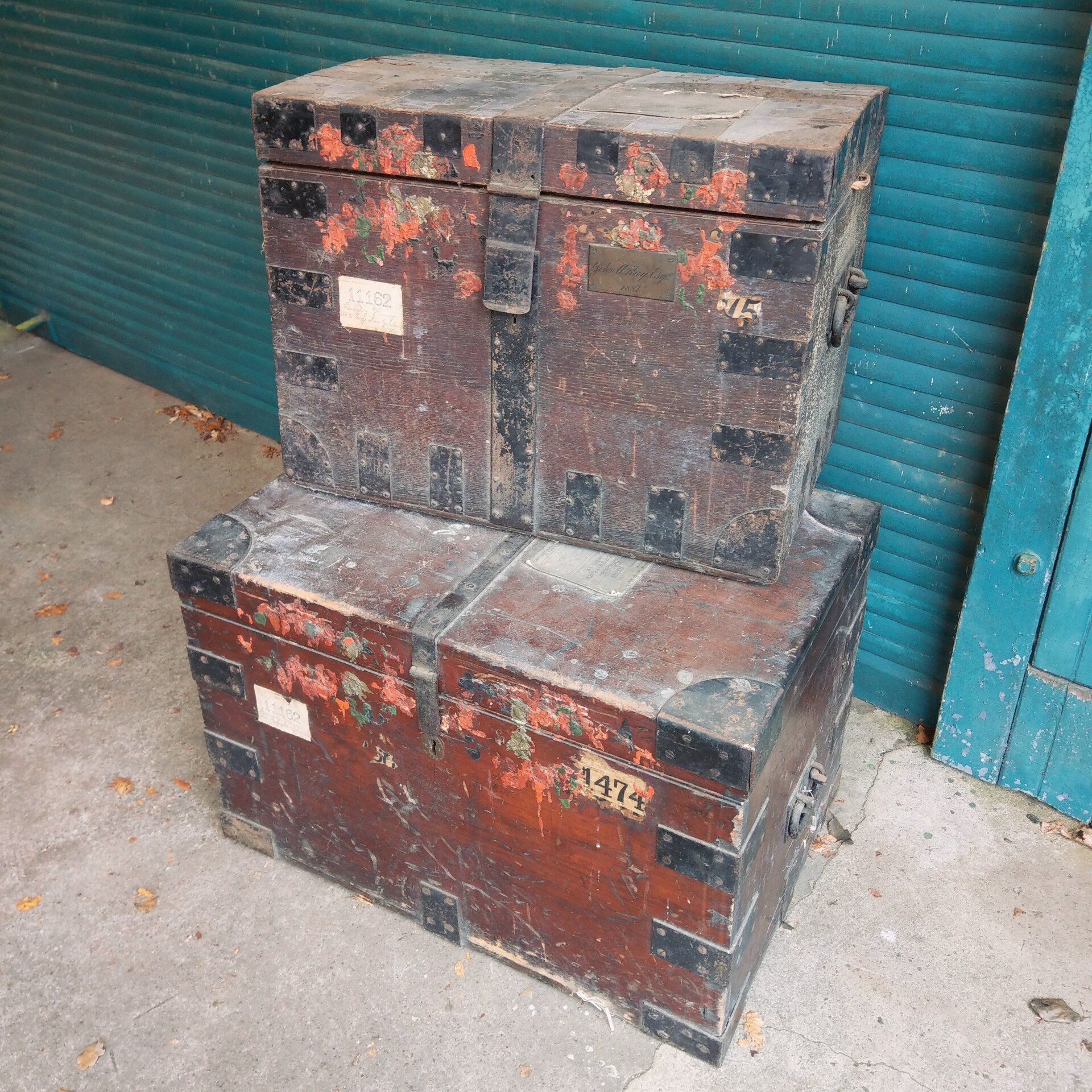Metal bound silver chests, still with sealing wax and repository labels visible.