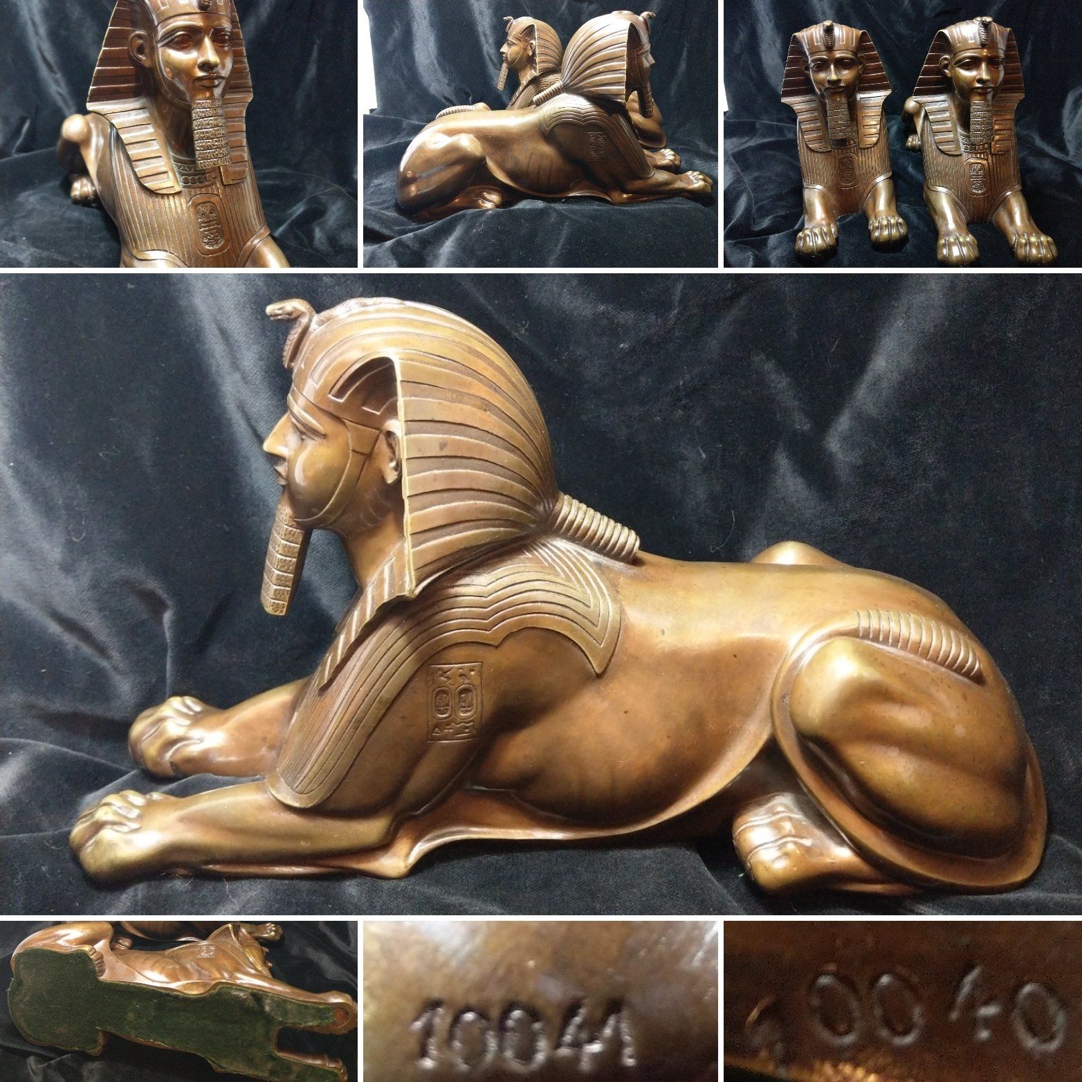 Pair of bronze Sphinx figures. Early 20thC in the manner of Grand Tour souvenirs but possibly part of a clock set. 13"