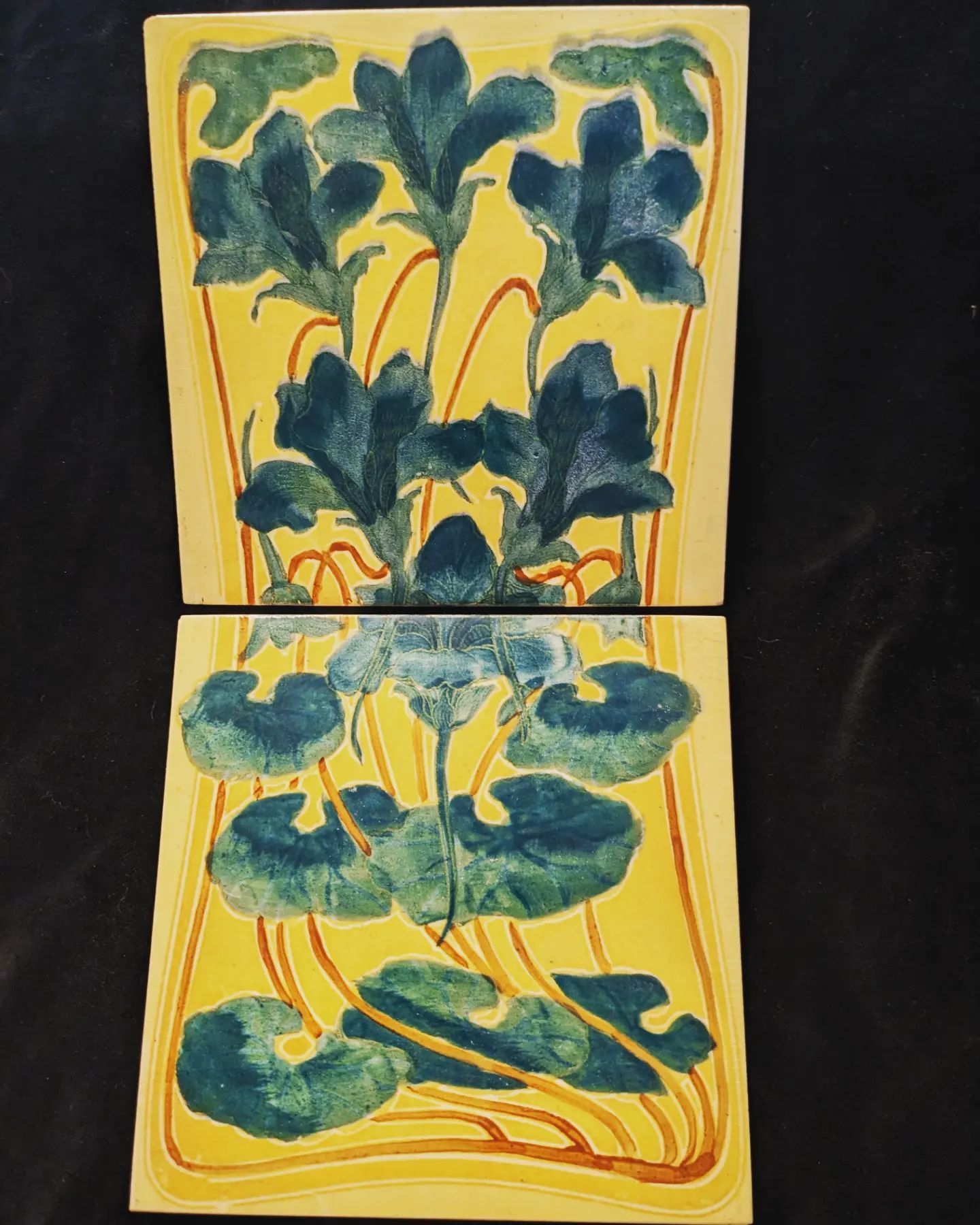 Pair of turn of the century 6"x6" glazed tiles.