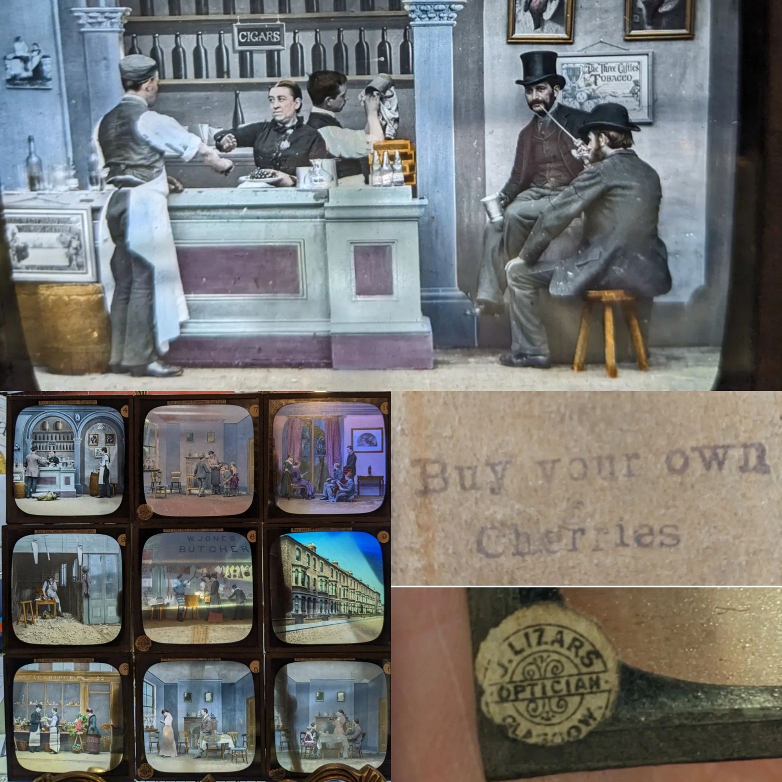 Set of 10 glass magic lantern slides.
