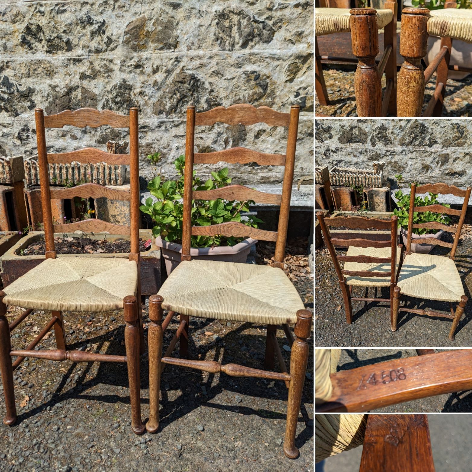 Rush seat and decorative turned spindles.